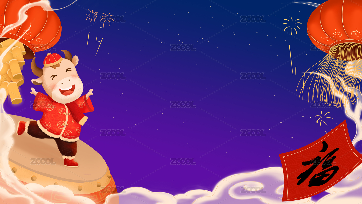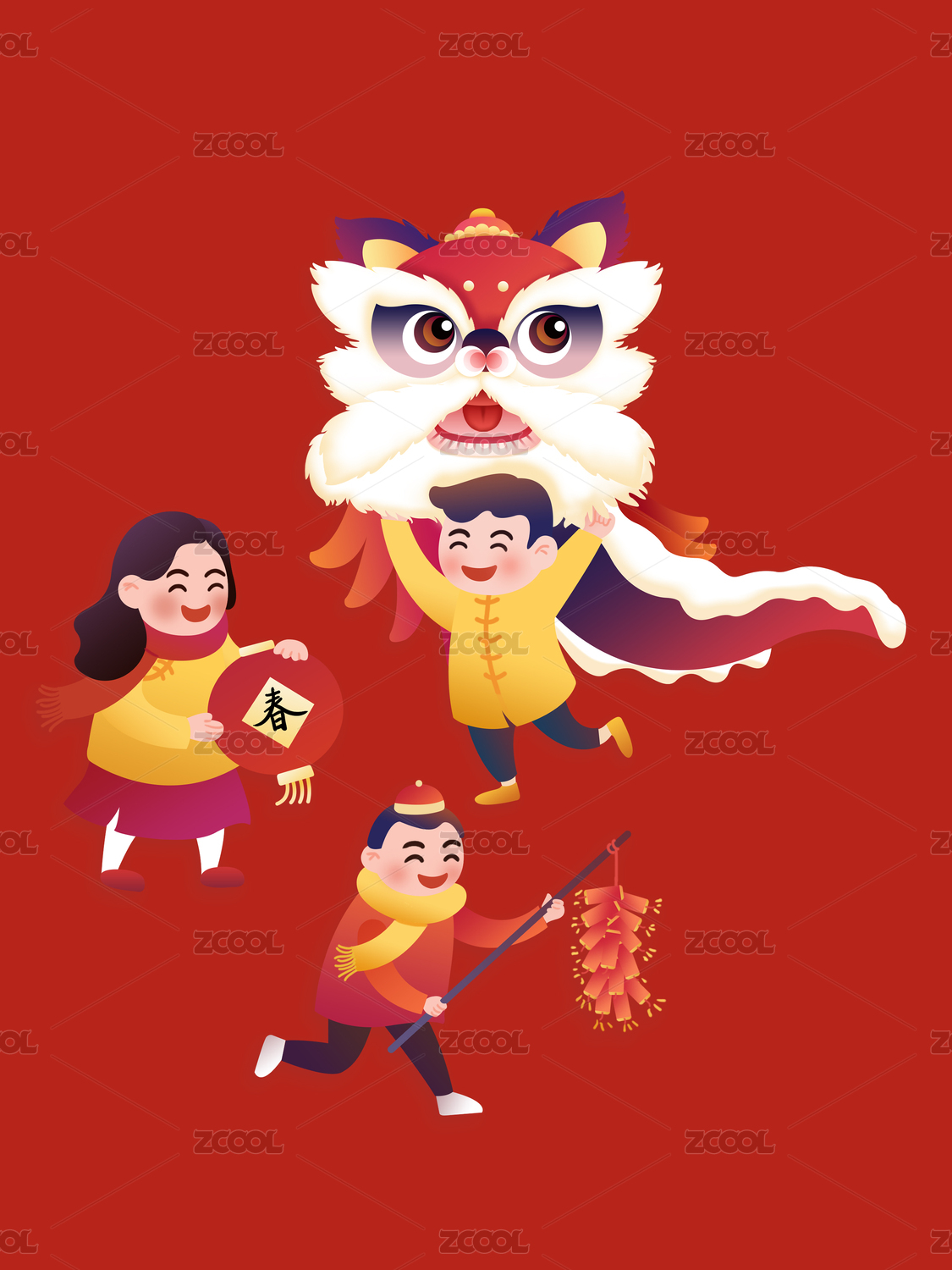 牛在舞狮来庆祝新年2021年牛年到来插画