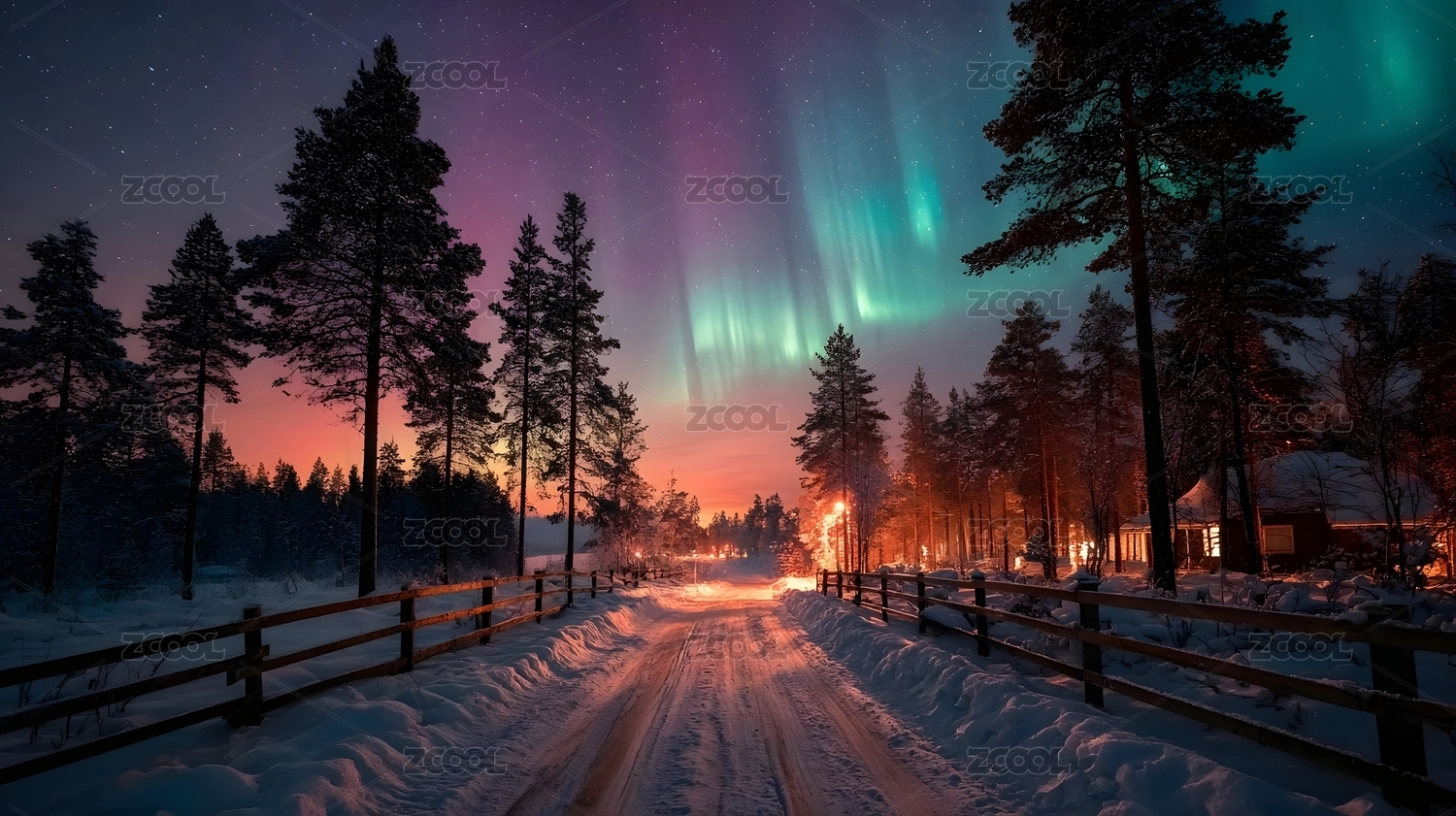 冬天,日落,雪,树,高山,房屋,宁静,自然美,风景,天空