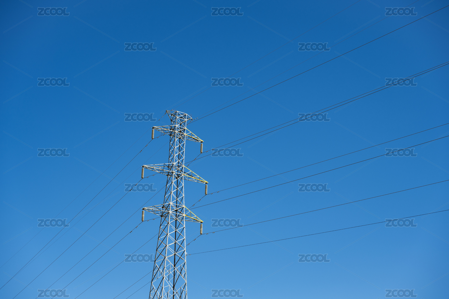 无云深邃蓝天下的输电塔
