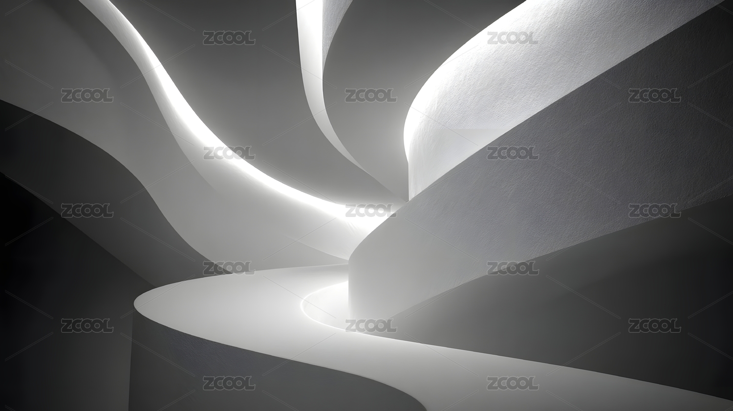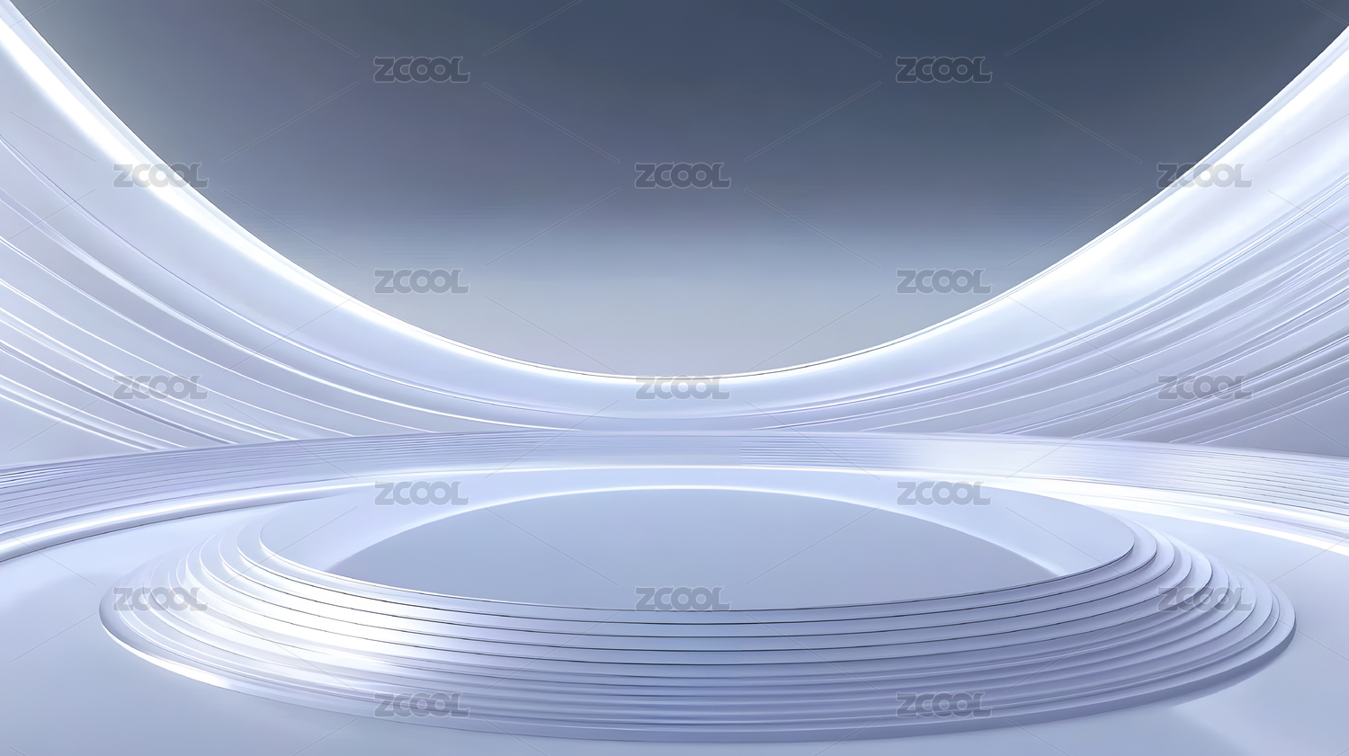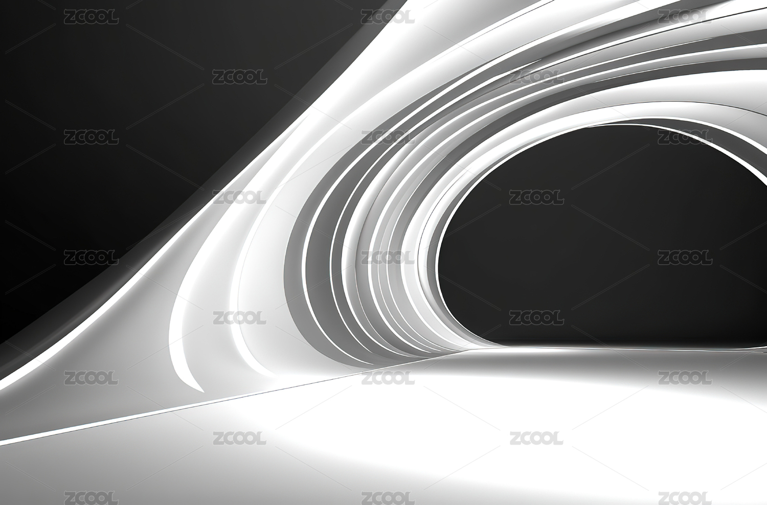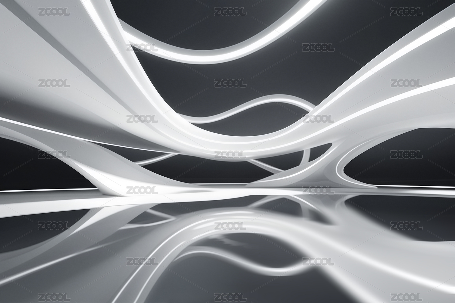 抽象波浪形状白色建筑与地板倒影3d渲染