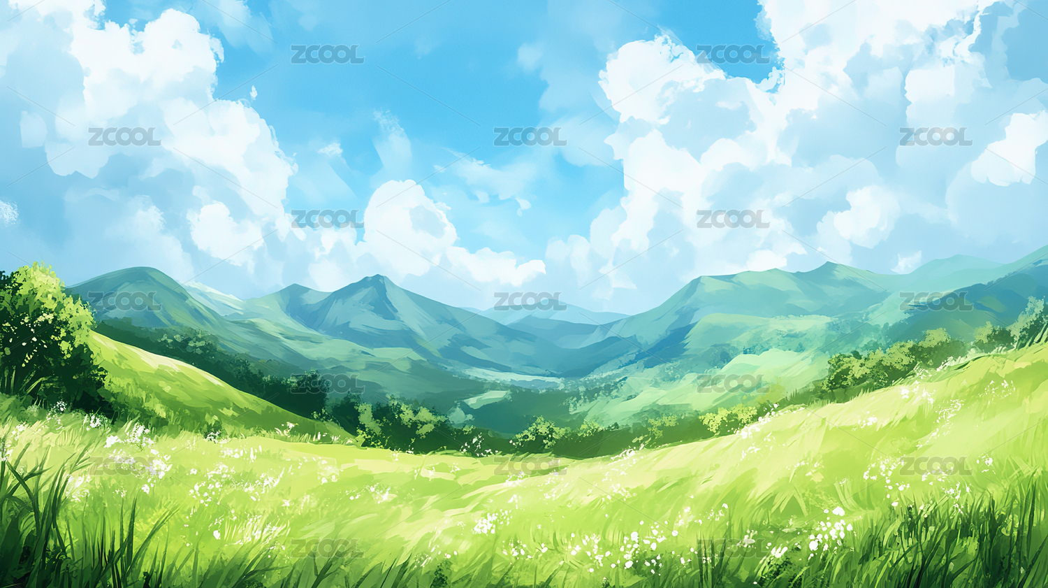 桌面背景壁纸草地蓝天插画