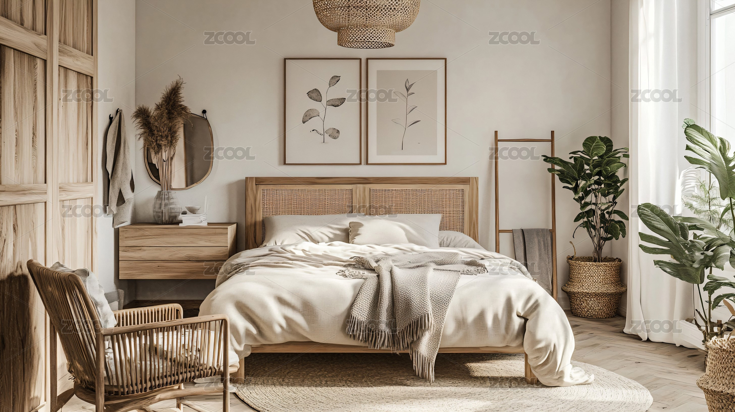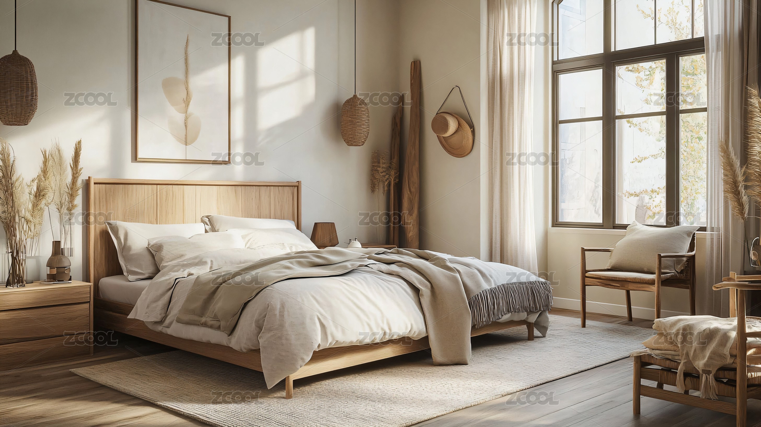 自然简约田园风现代卧室室内场景