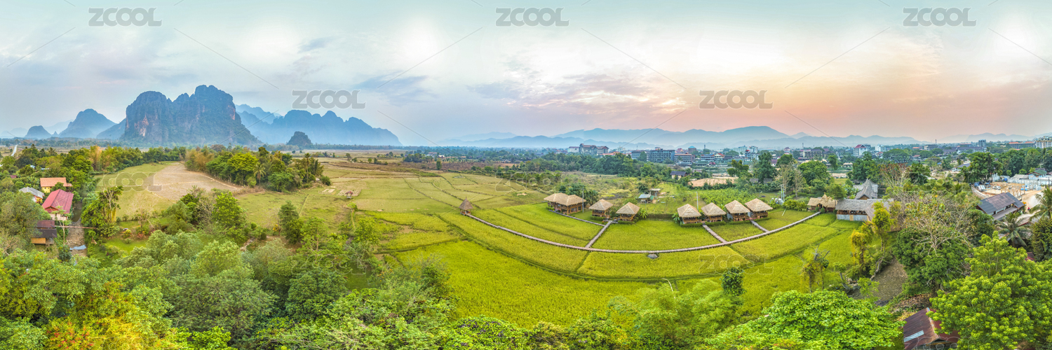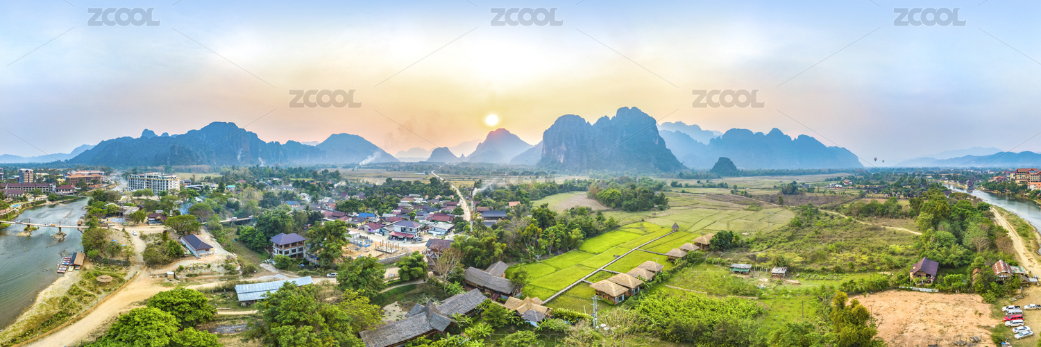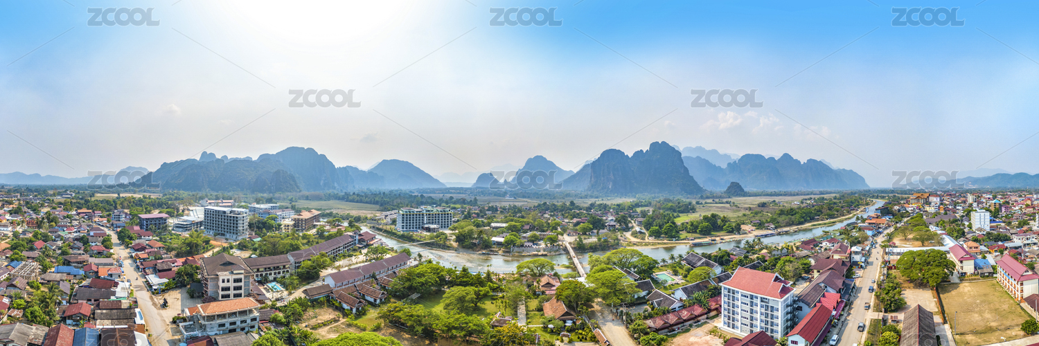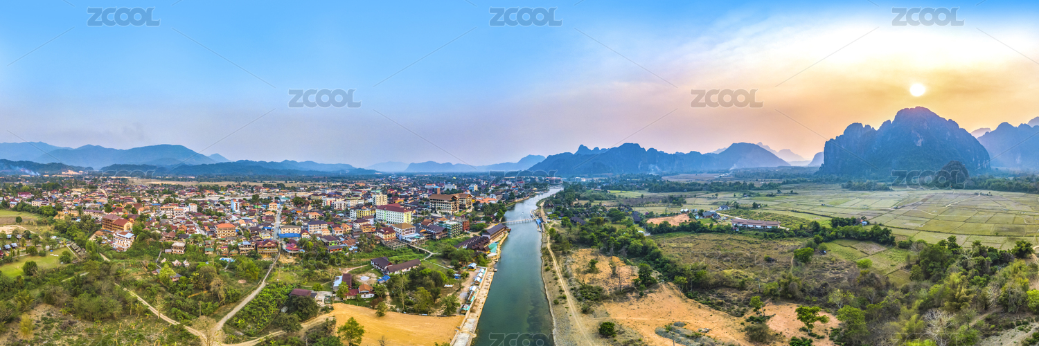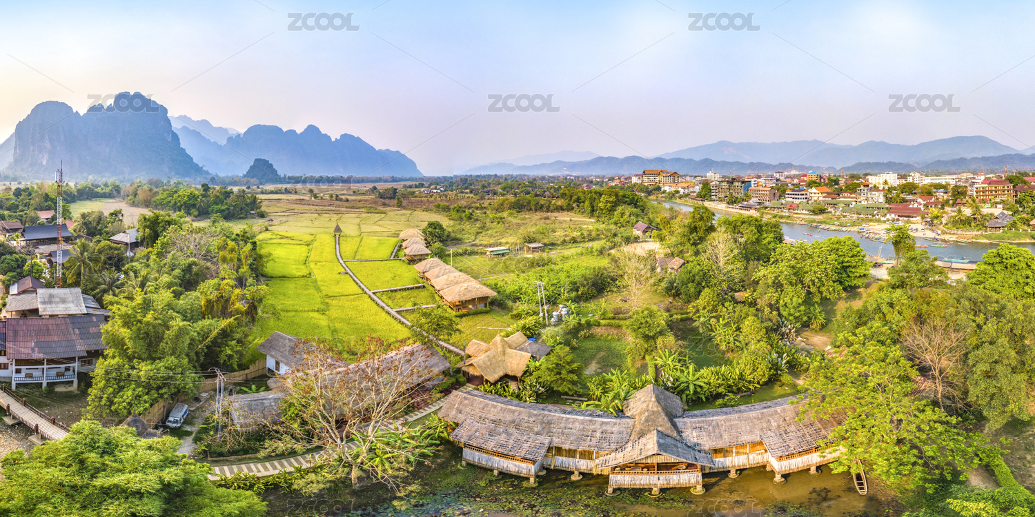 Panoramic Landscape and Townscape of Vang Vieng, Laos, Southeast Asia