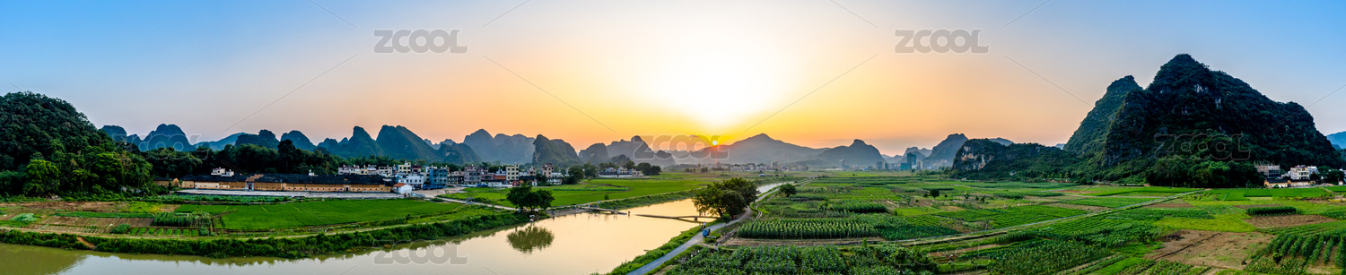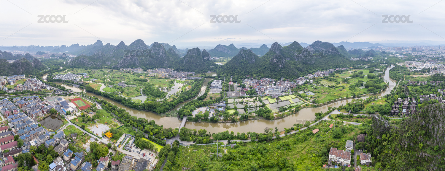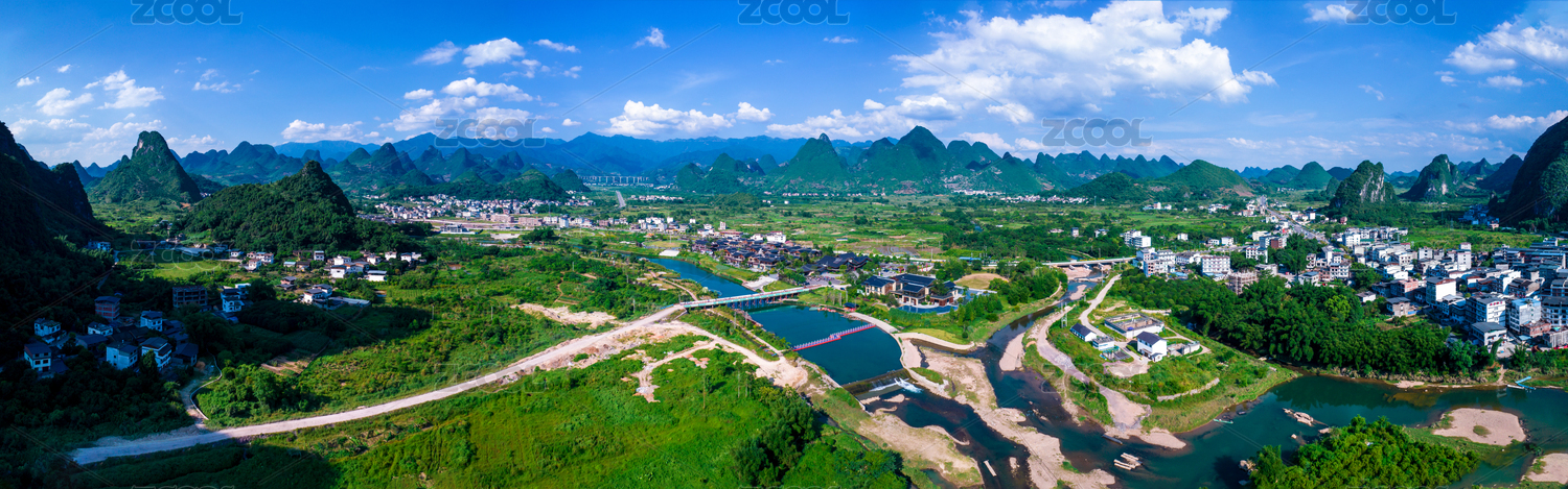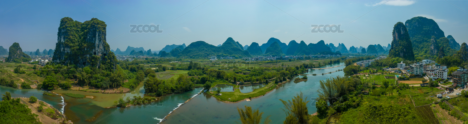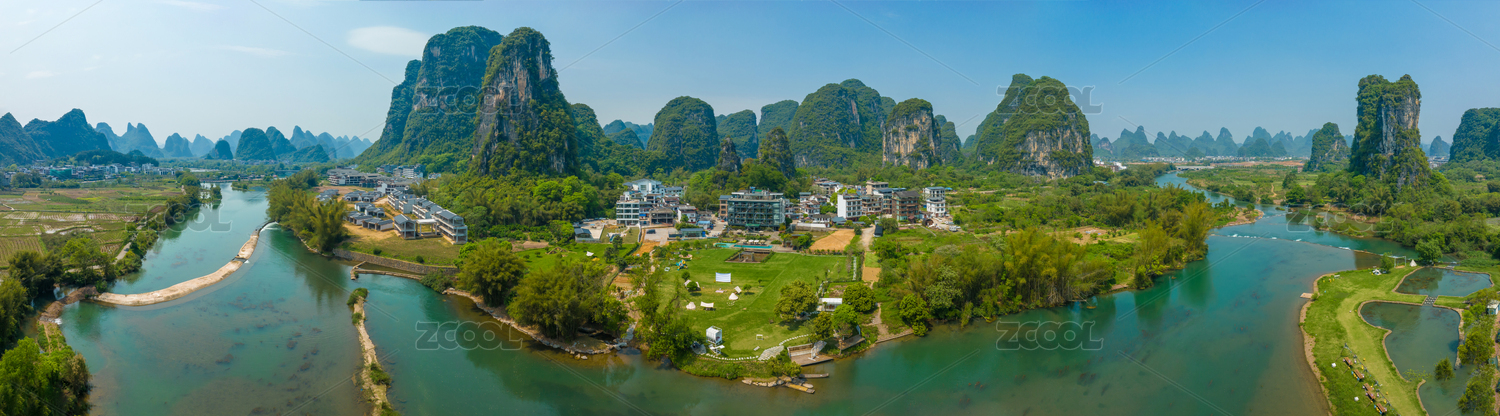 中国广西桂林阳朔兴坪古镇全景