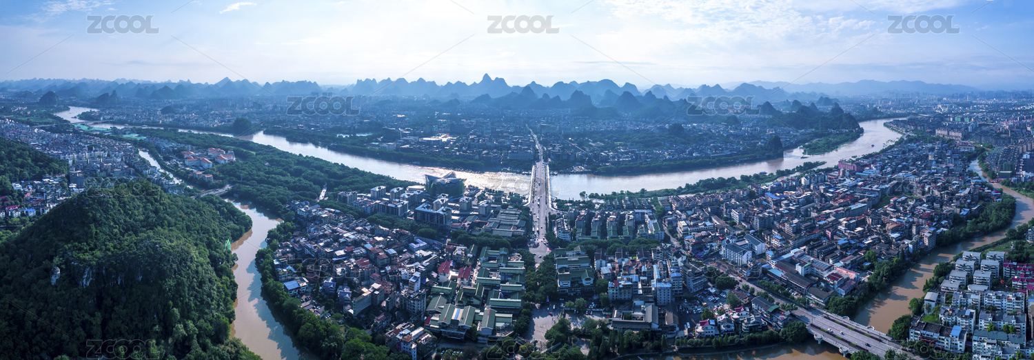航拍广西桂林夏季城市风光