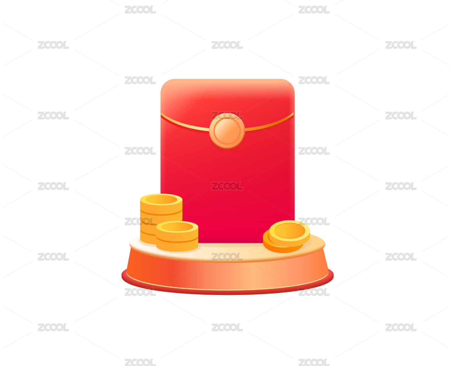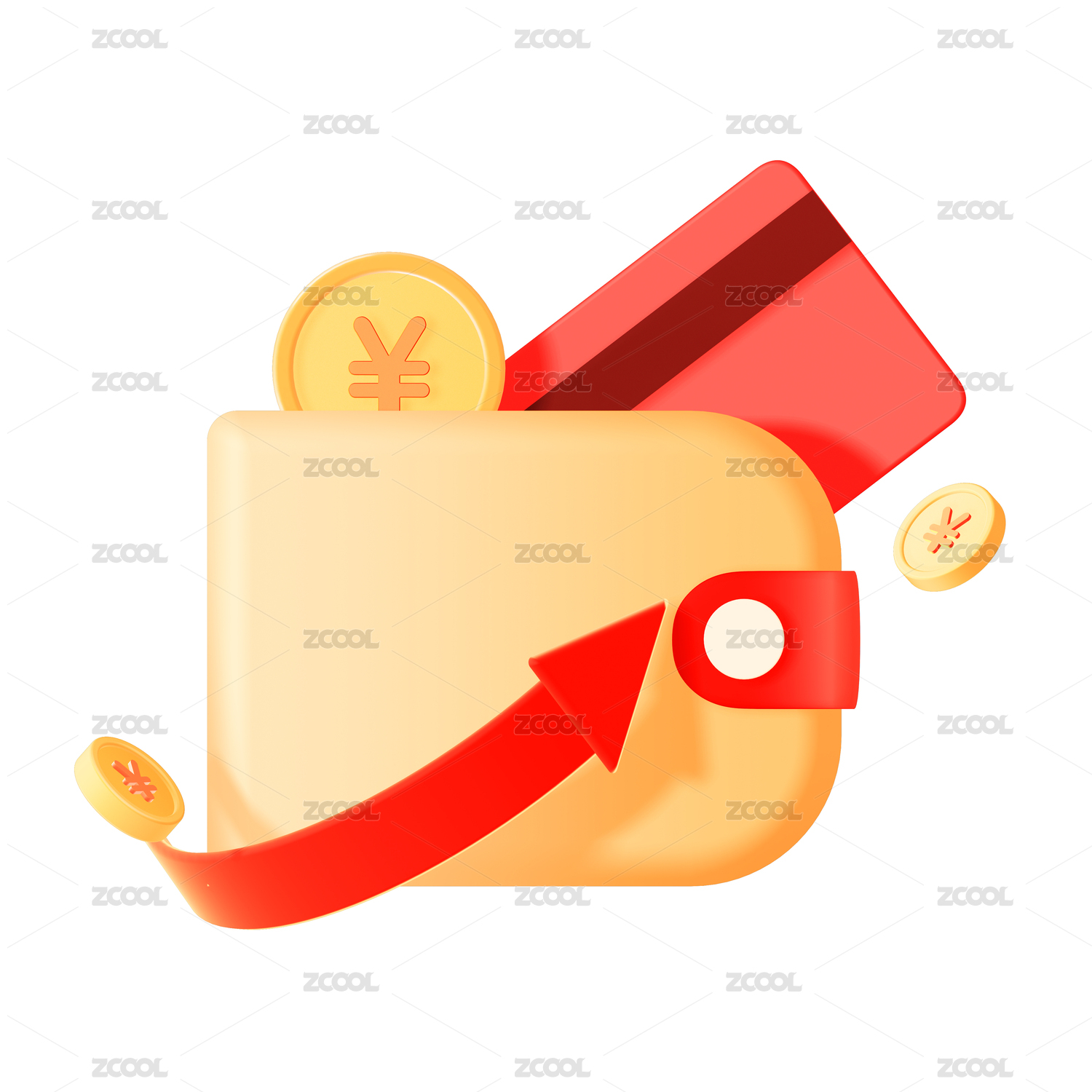 红金色喜庆理财促销储蓄钱包3d立体插画