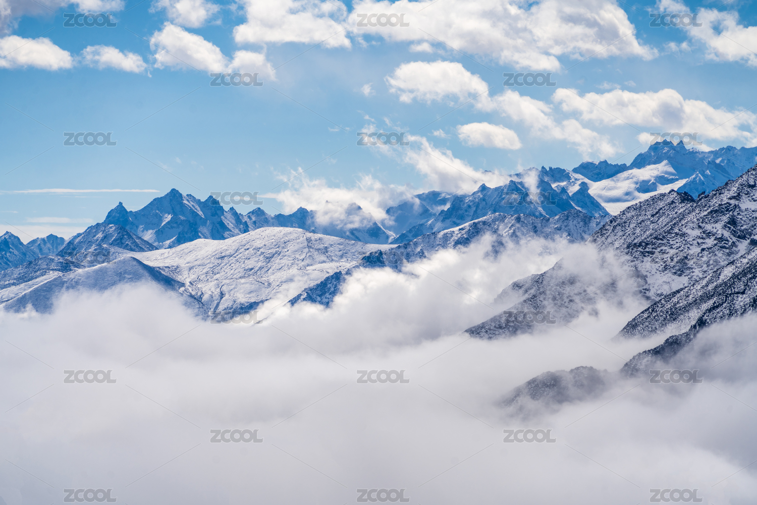 冬天,蓝天,冰雪,云海,白云,山峰,雪山