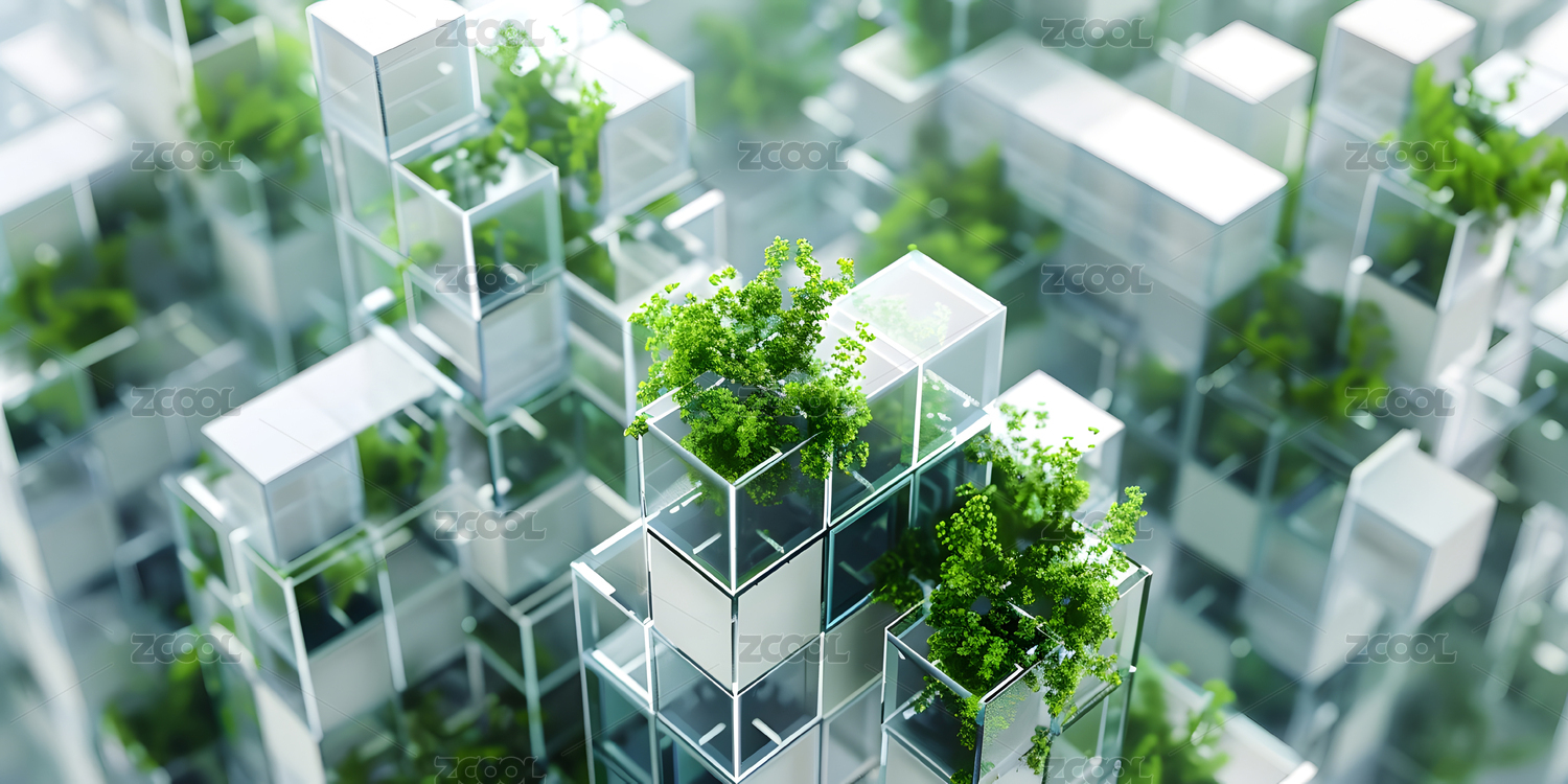 立方建筑绿植未来城市