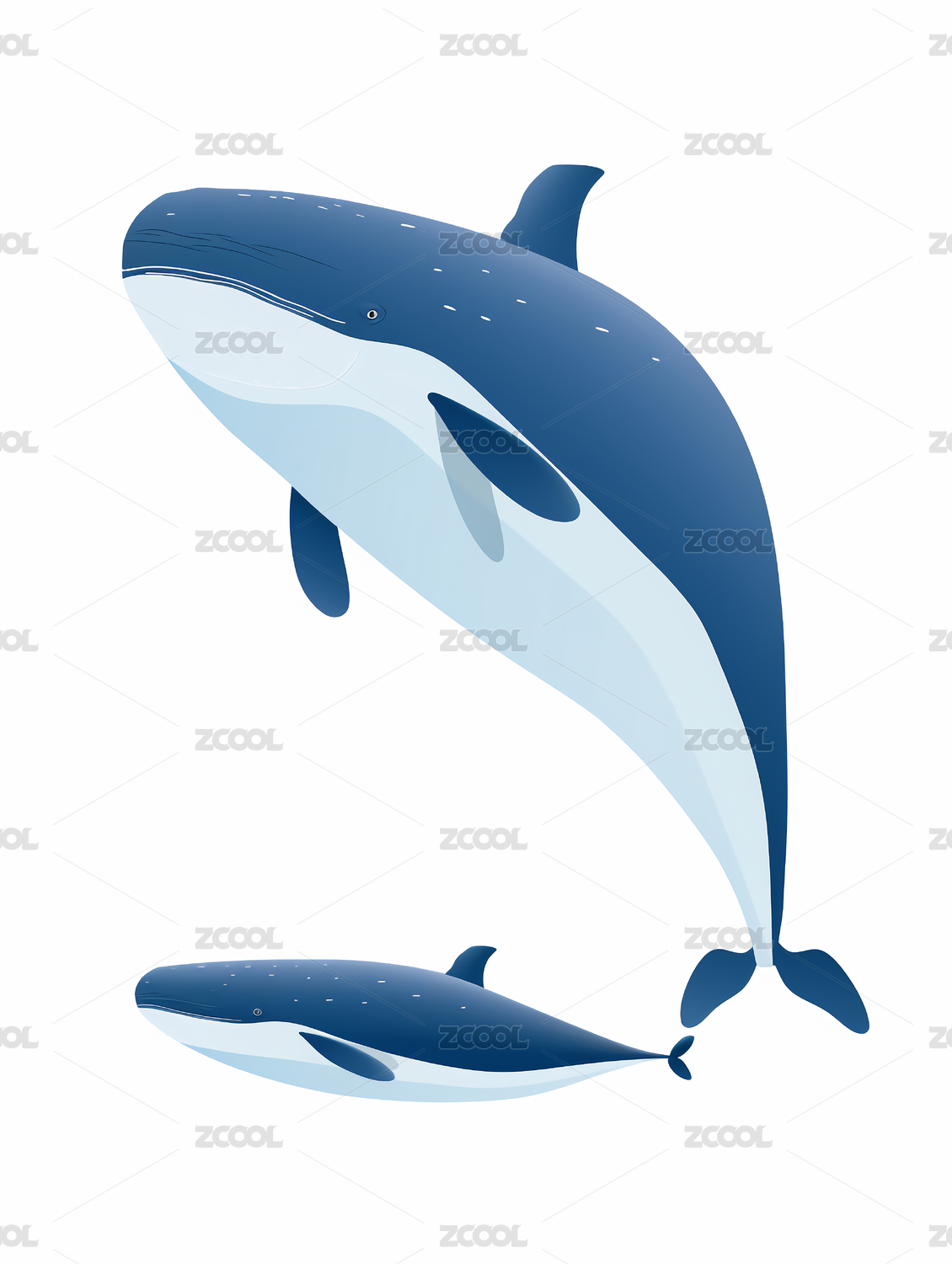治愈系唯美插画一条蓝色的鲸鱼在遨游