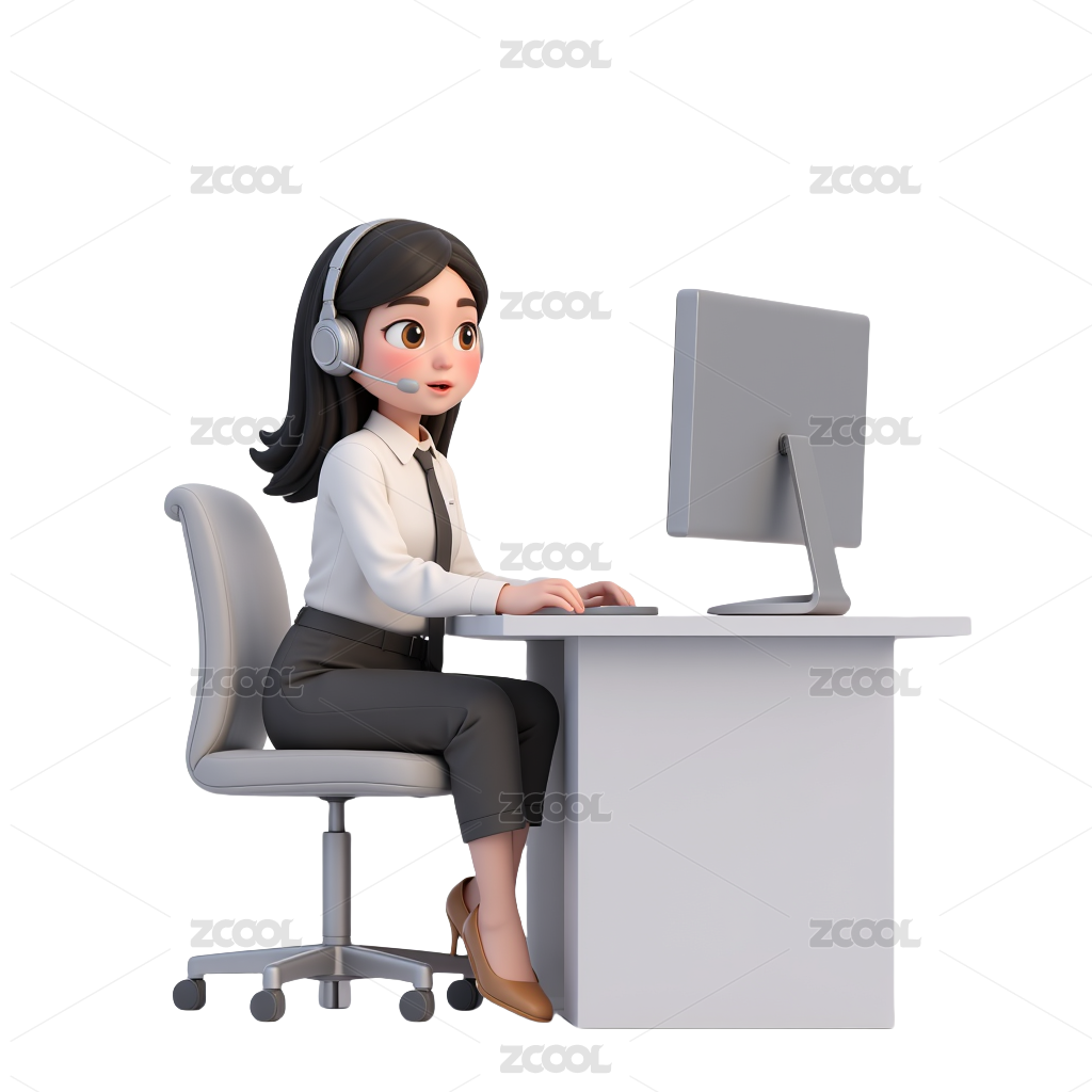 职场女士在电脑上办公3D卡通风格