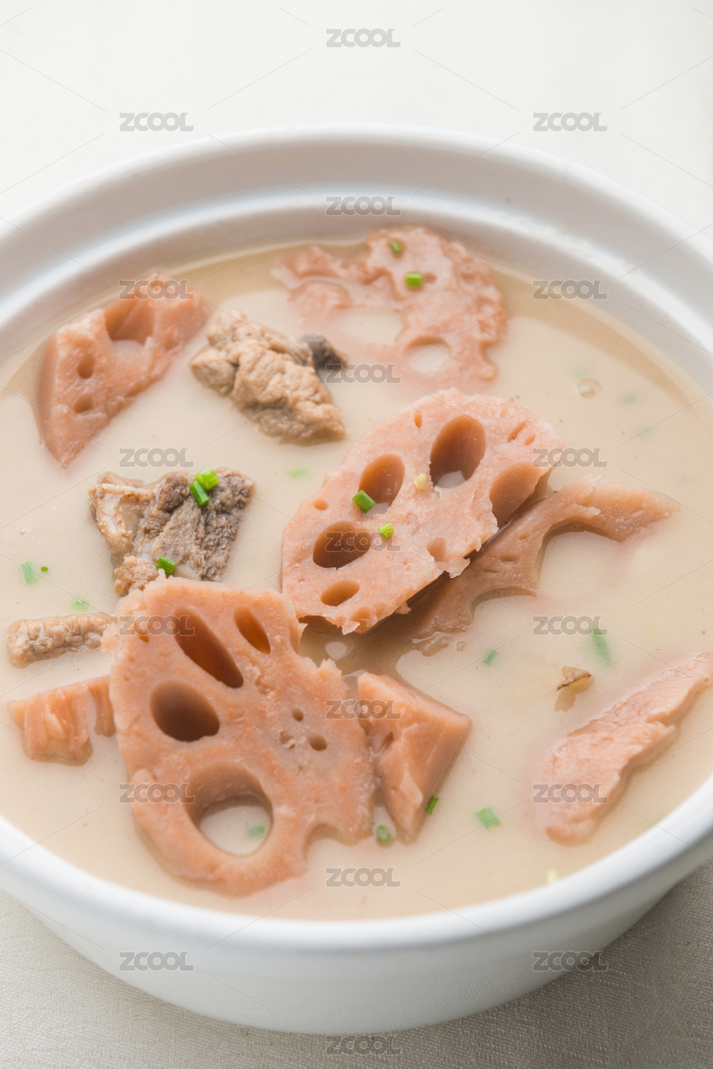 白背景上一碗莲藕花生骨头汤