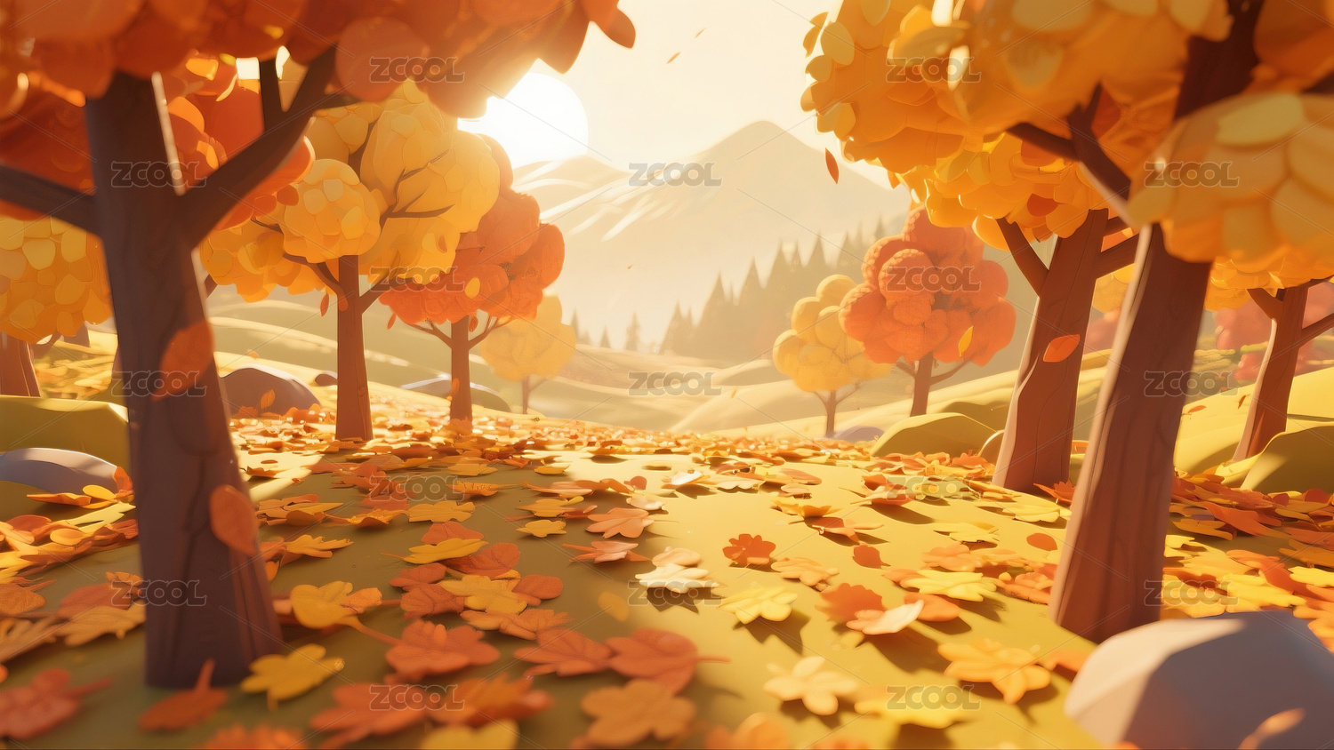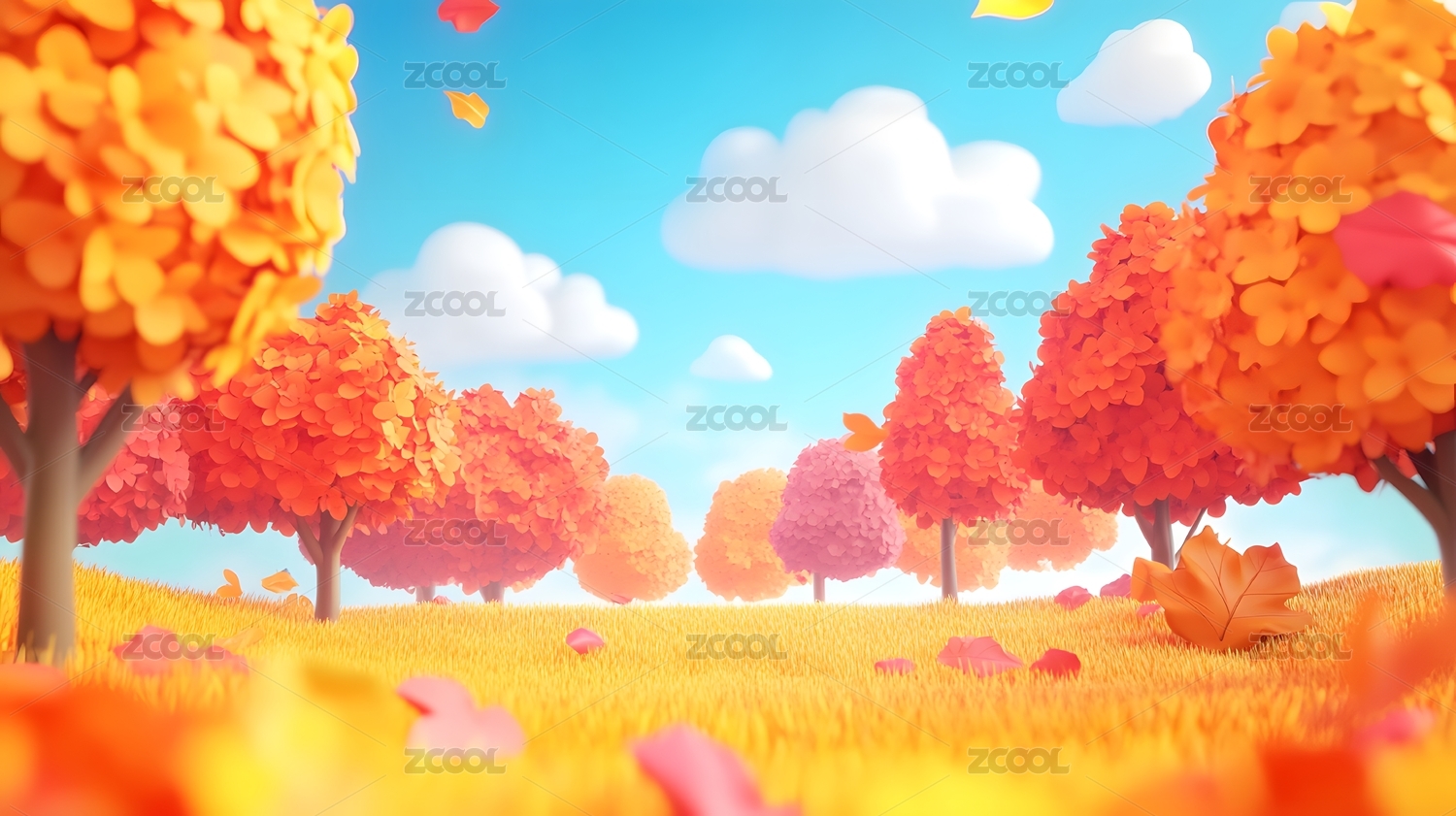 秋季3D卡通户外风景微距插画