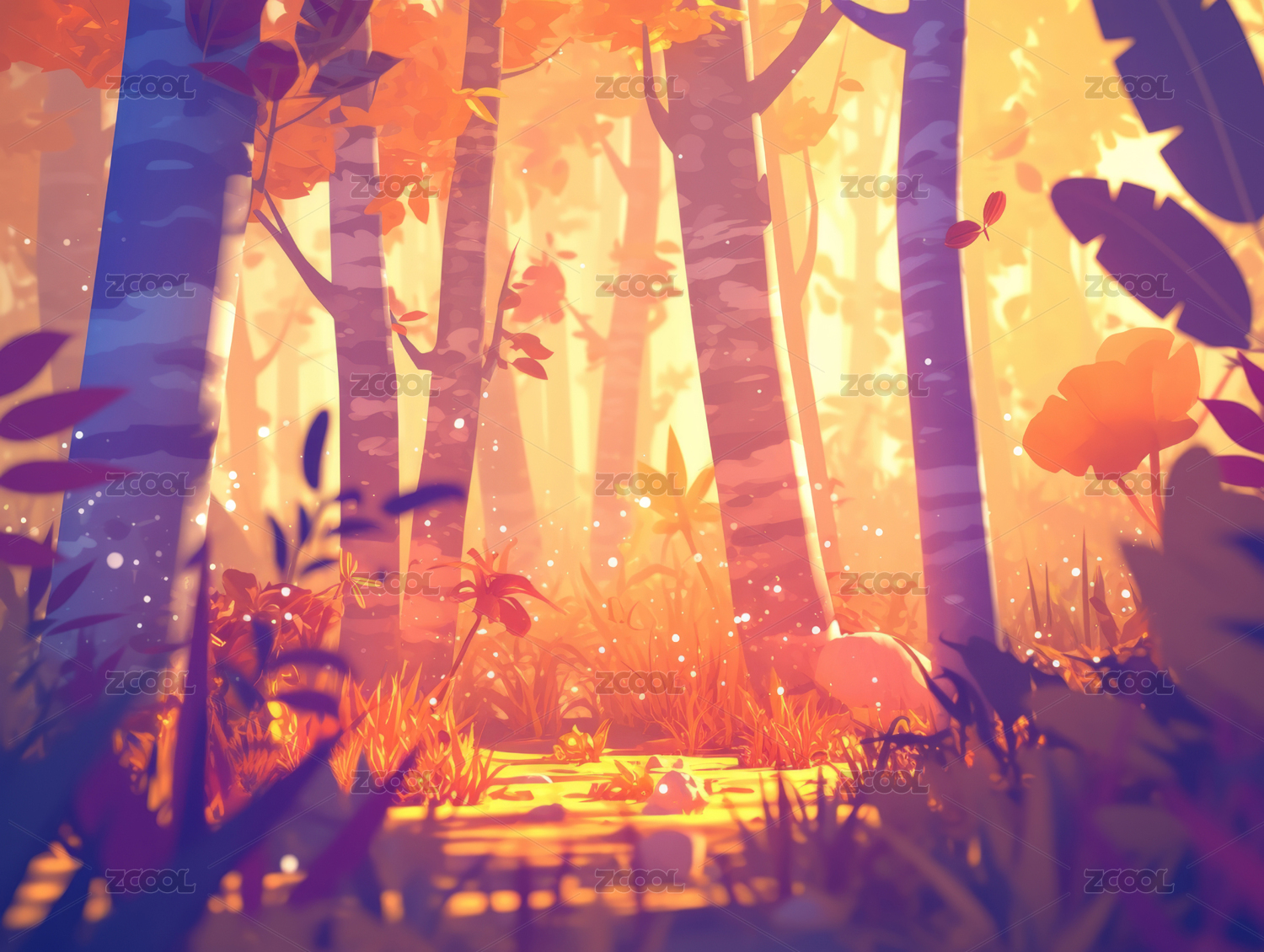 唯美秋天森林手绘插画