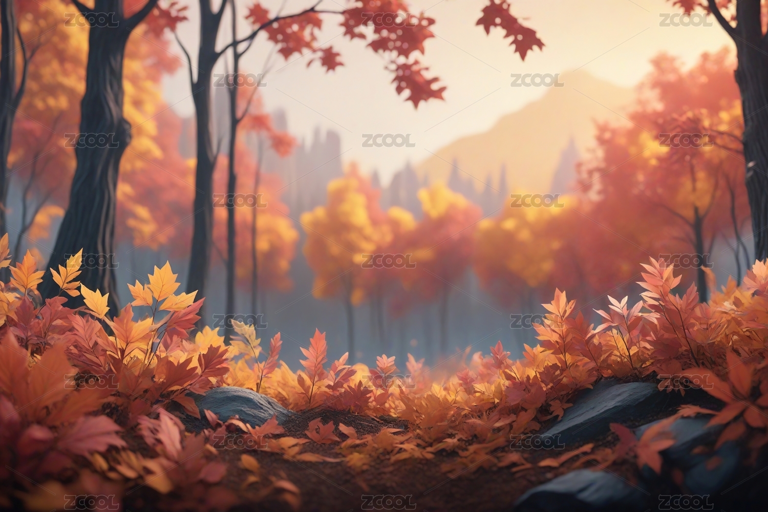 三维秋天的枫叶
