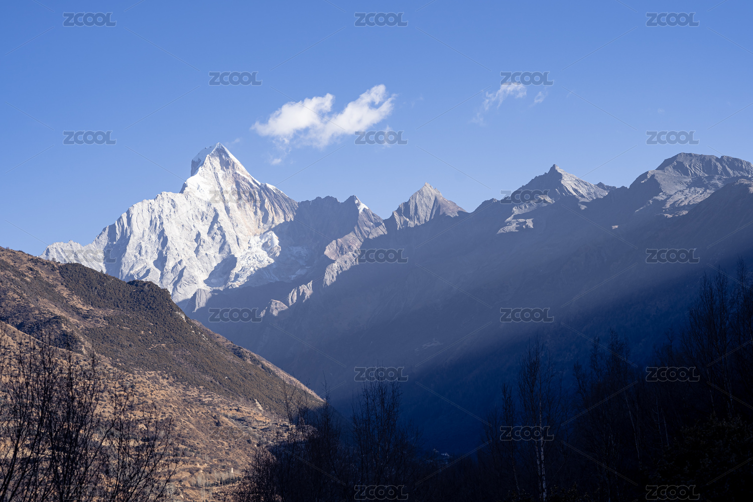 中国云南香格里拉德钦梅里雪山蓝天白云