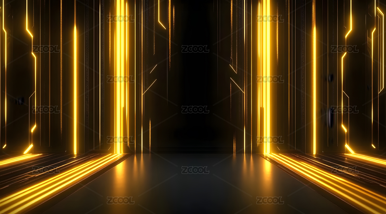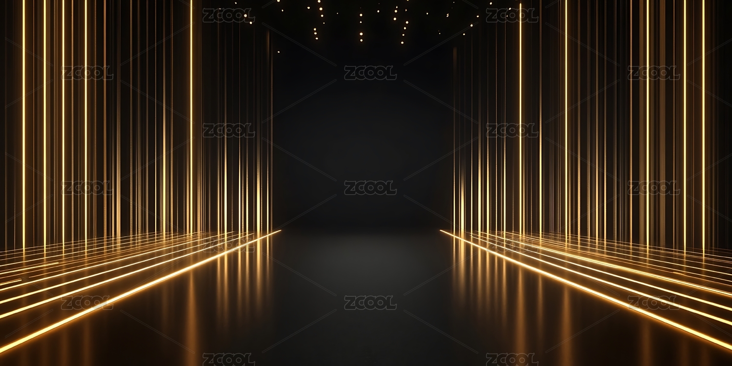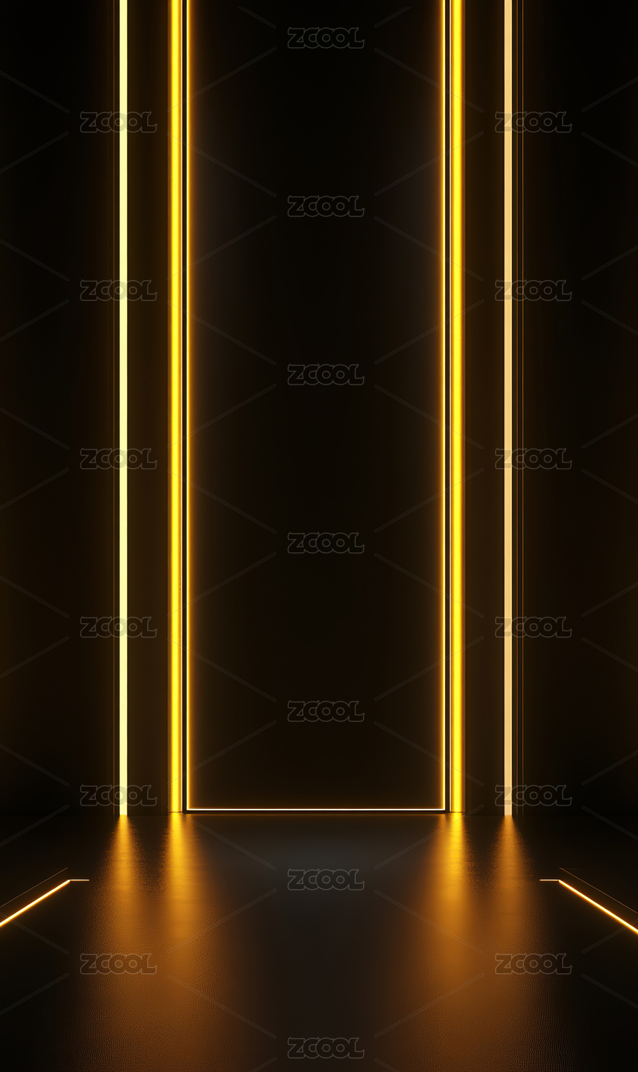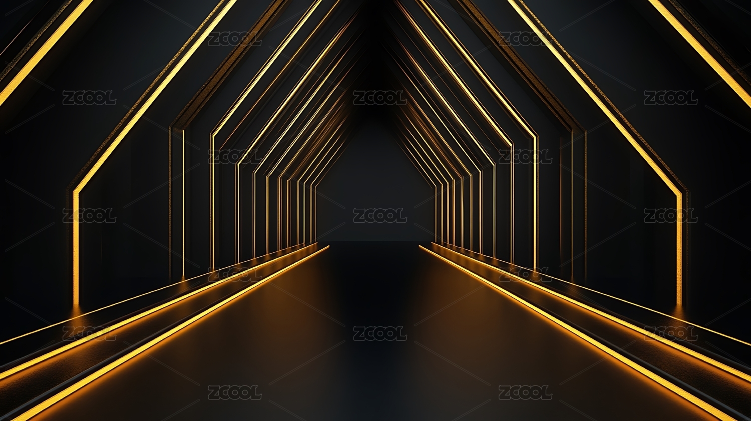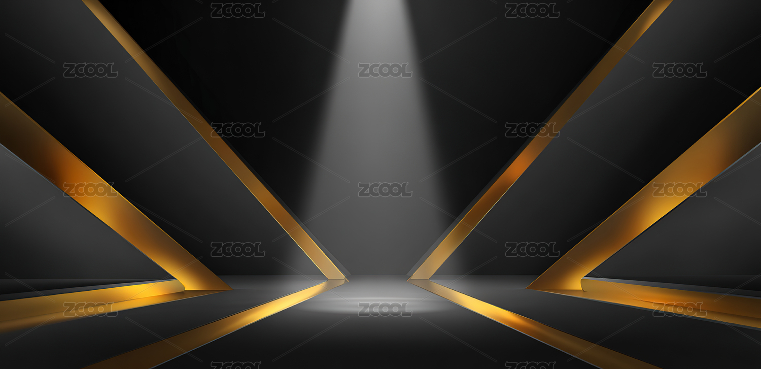 黑金现代几何建筑空间平台3D渲染抽象背景