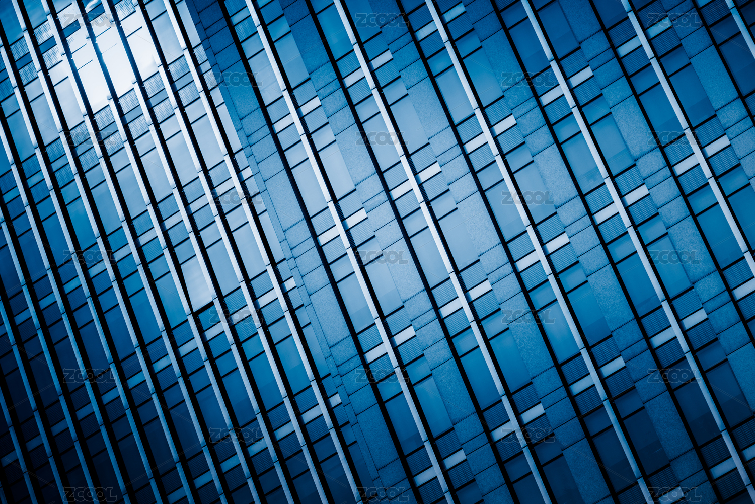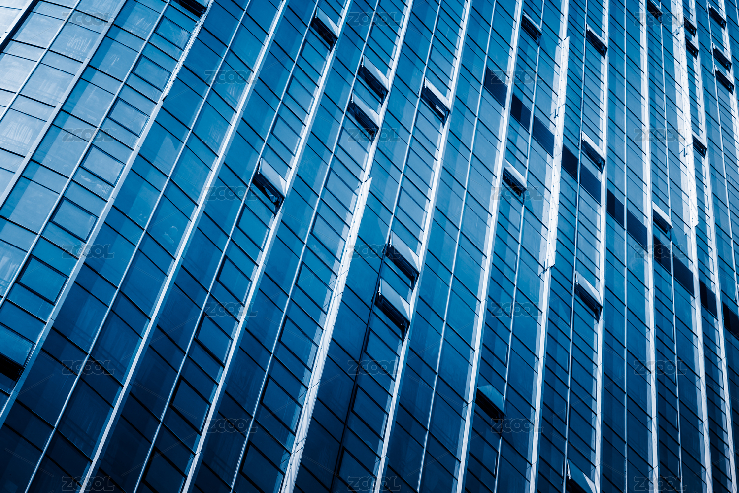 抽象的建筑摩天大楼的蓝色玻璃墙