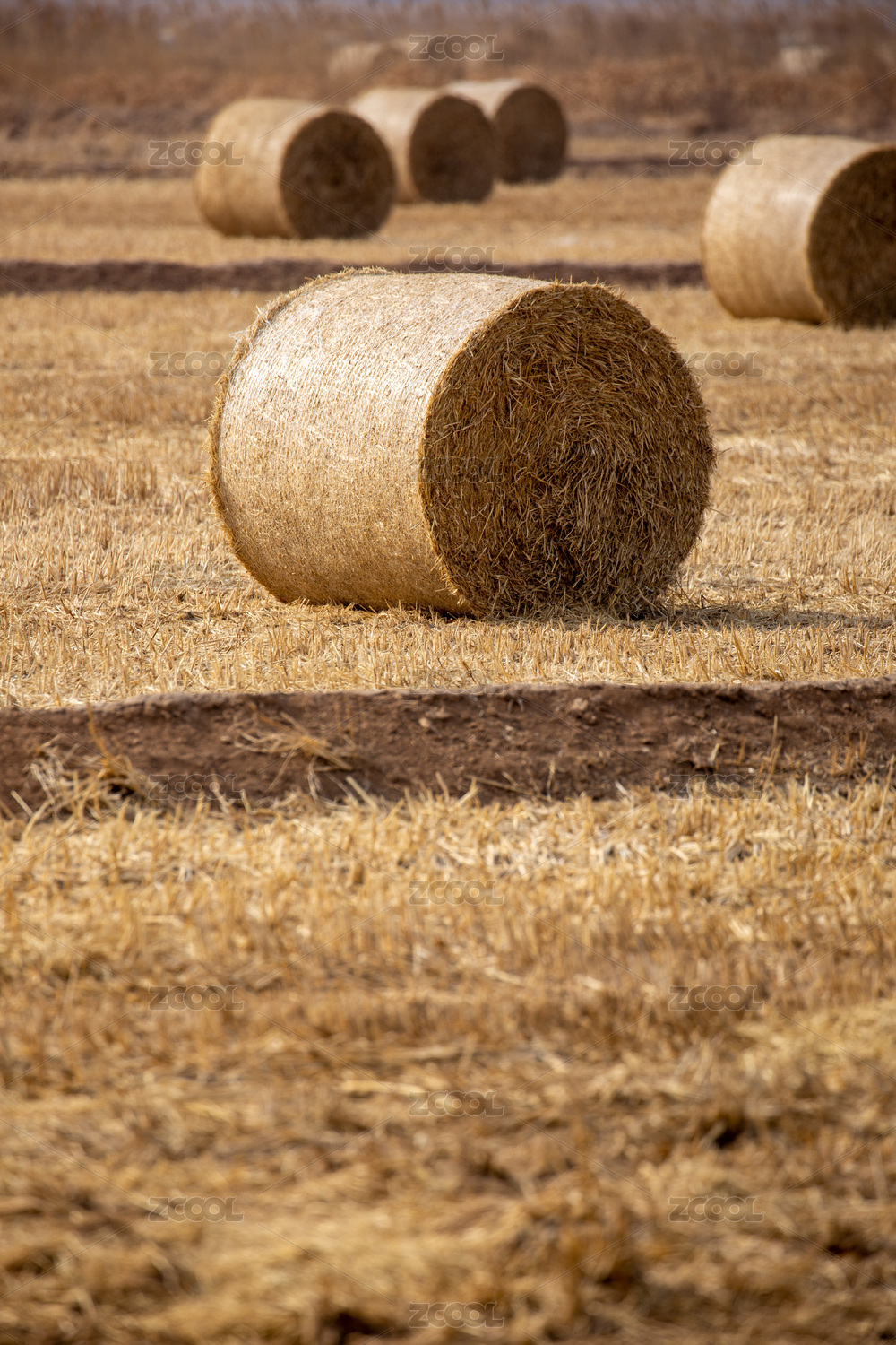 麦地上的干草卷