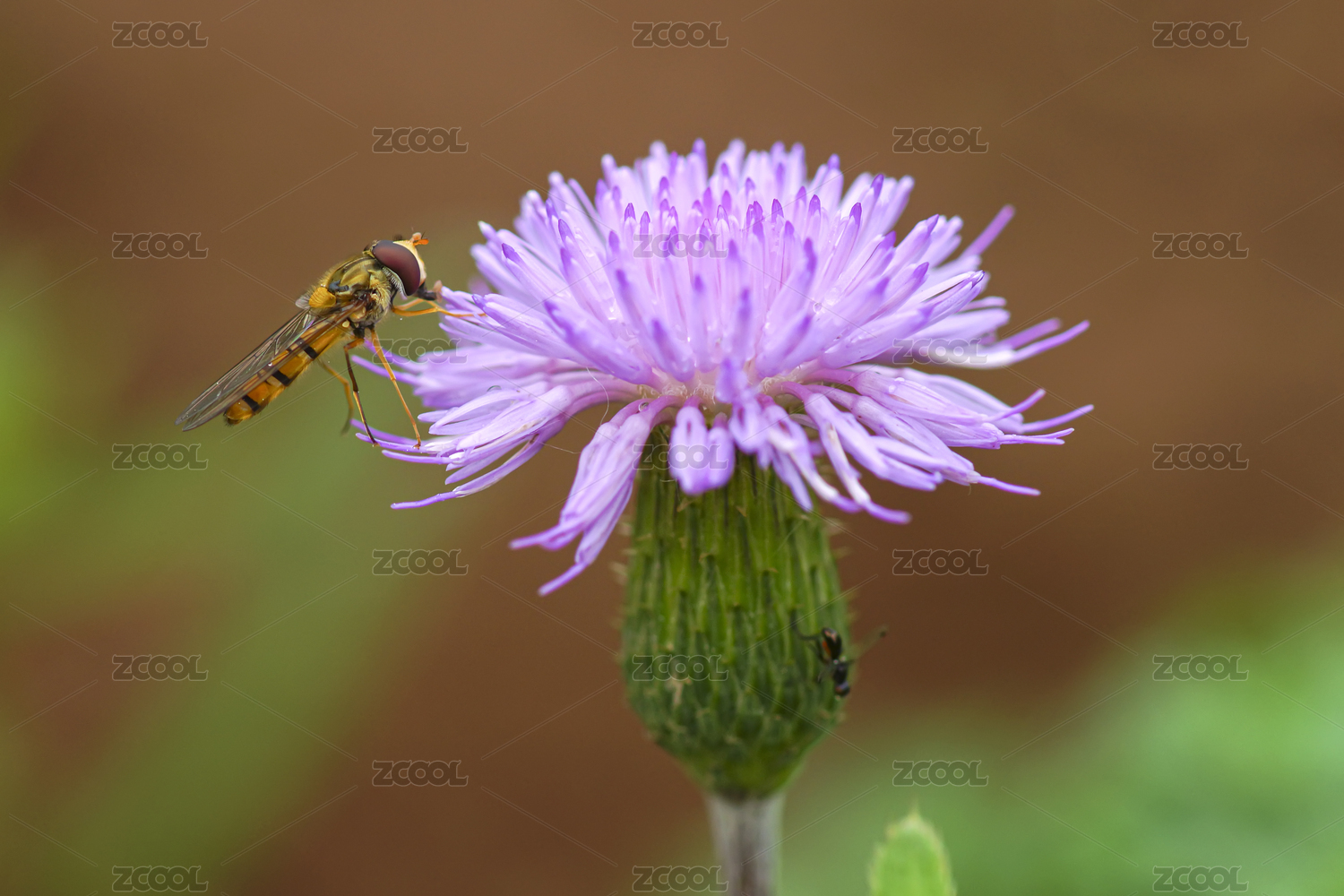 一只小蜂落在紫粉色小花上