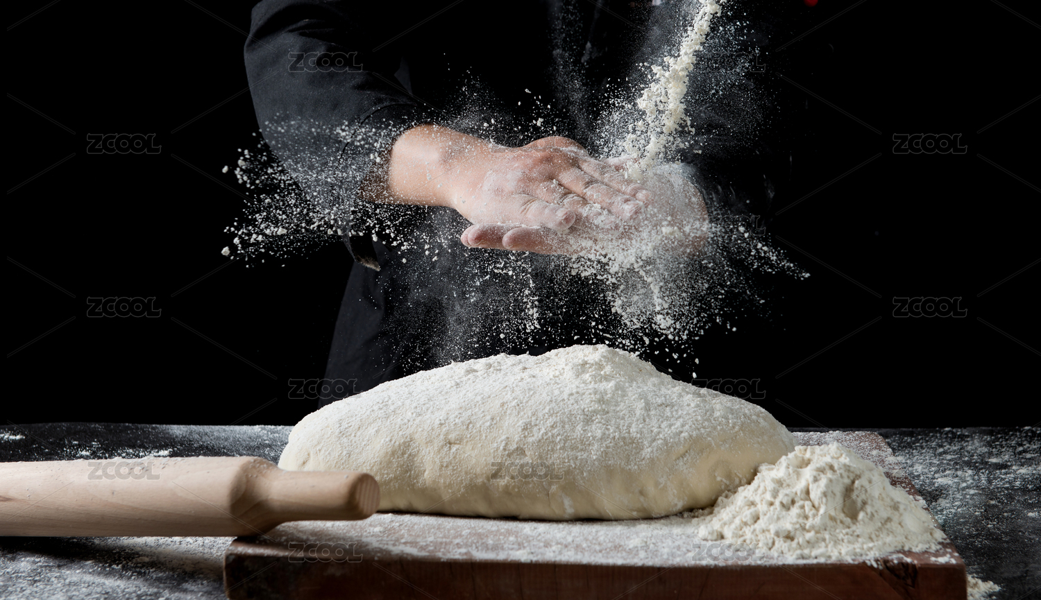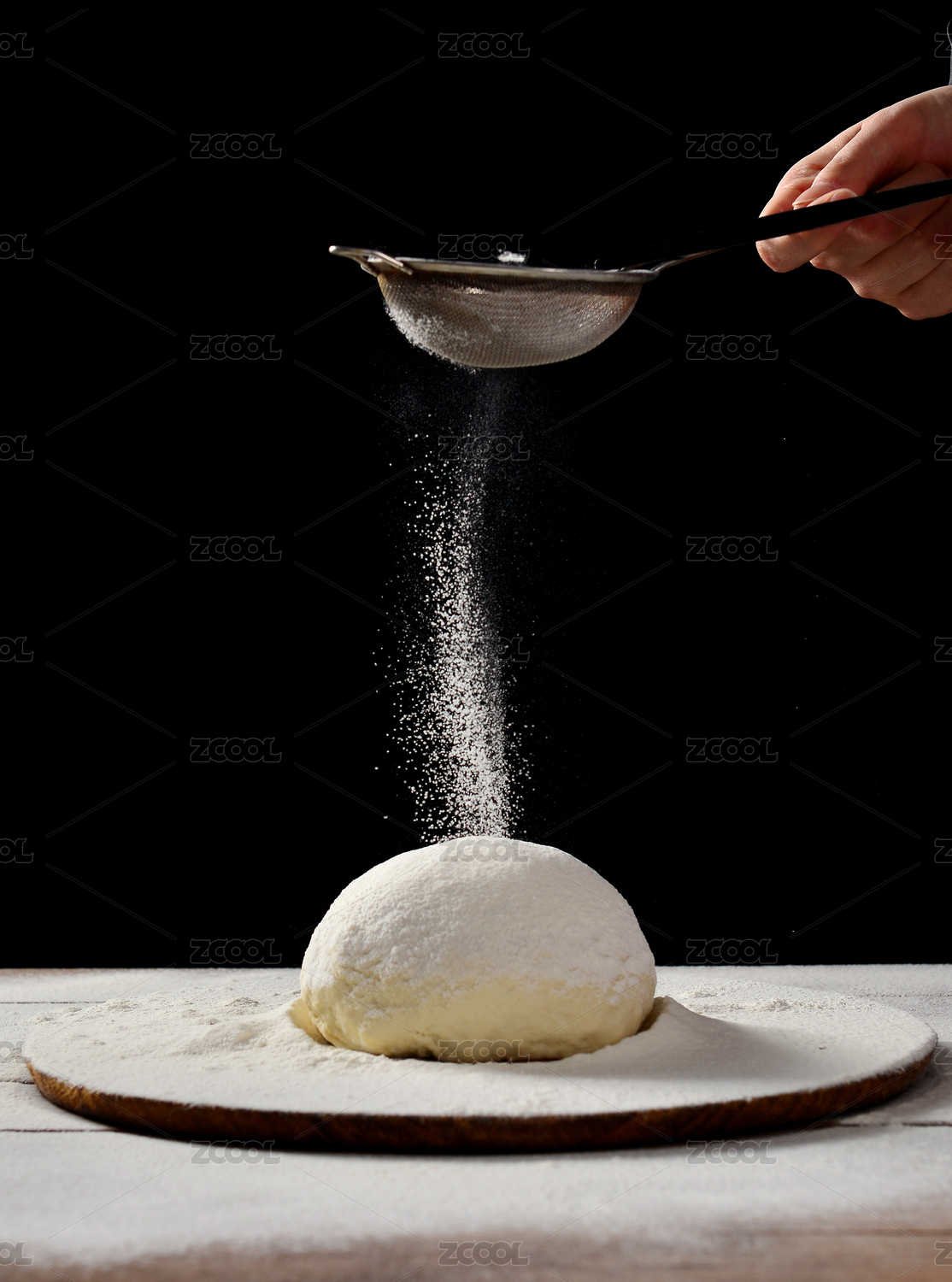 中国,人,人手,健康,发酵,撒粉,撒粉器,撒落,暗调,木案板