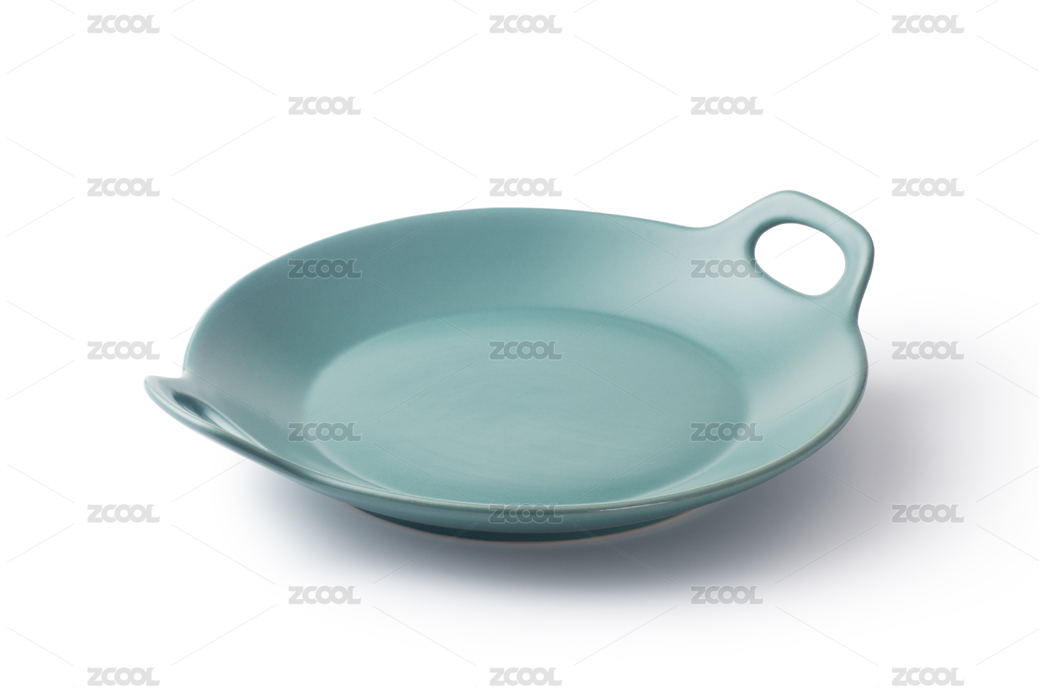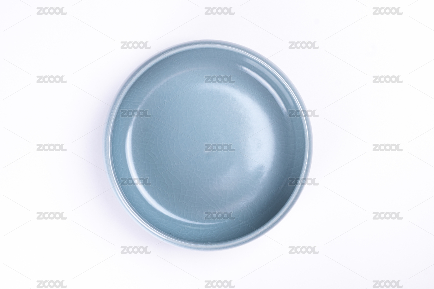 白色背景上的一个浅蓝色空盘子