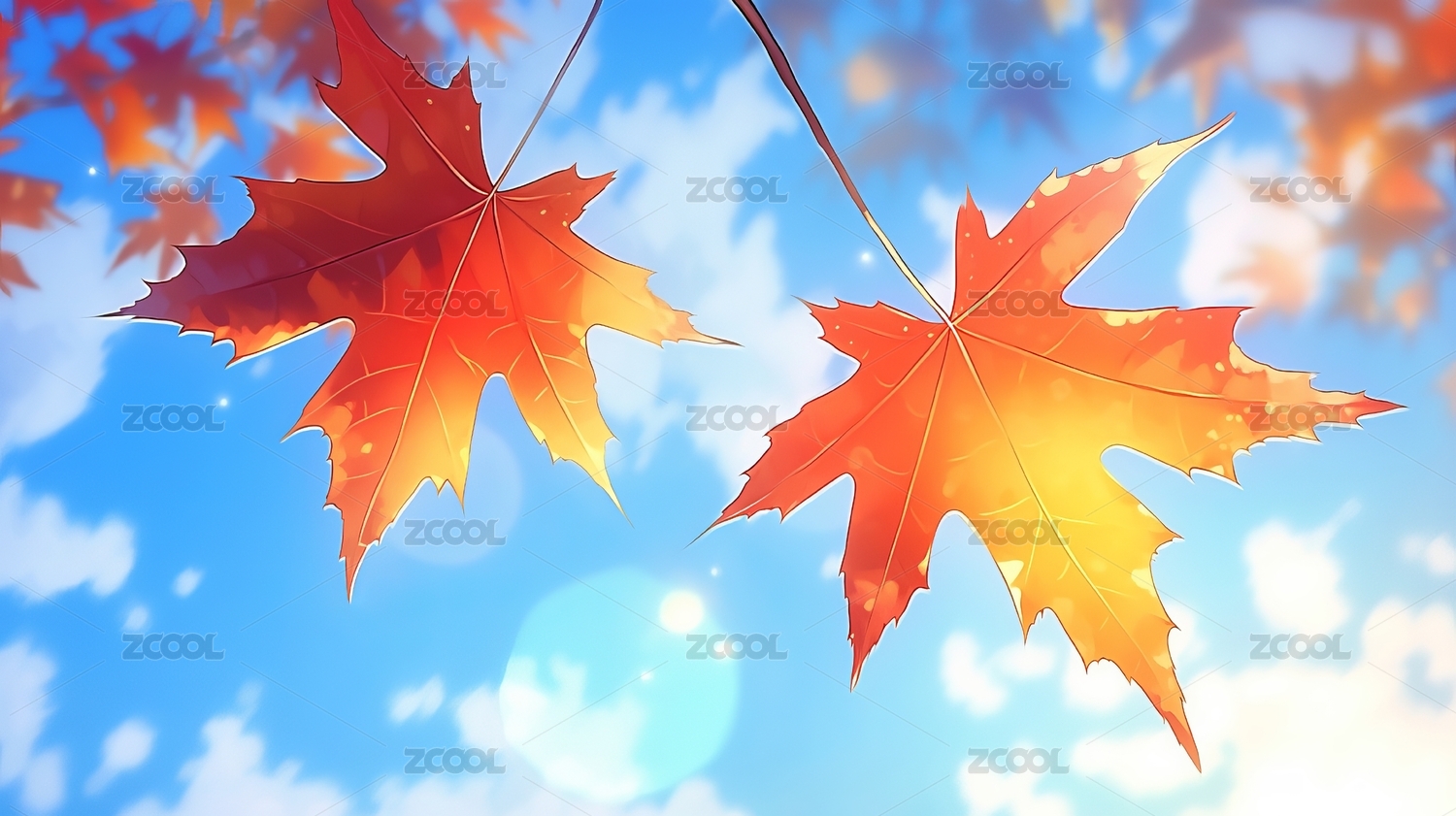 手绘,卡通,秋天,丰收,季节,秋日,插画,枫叶