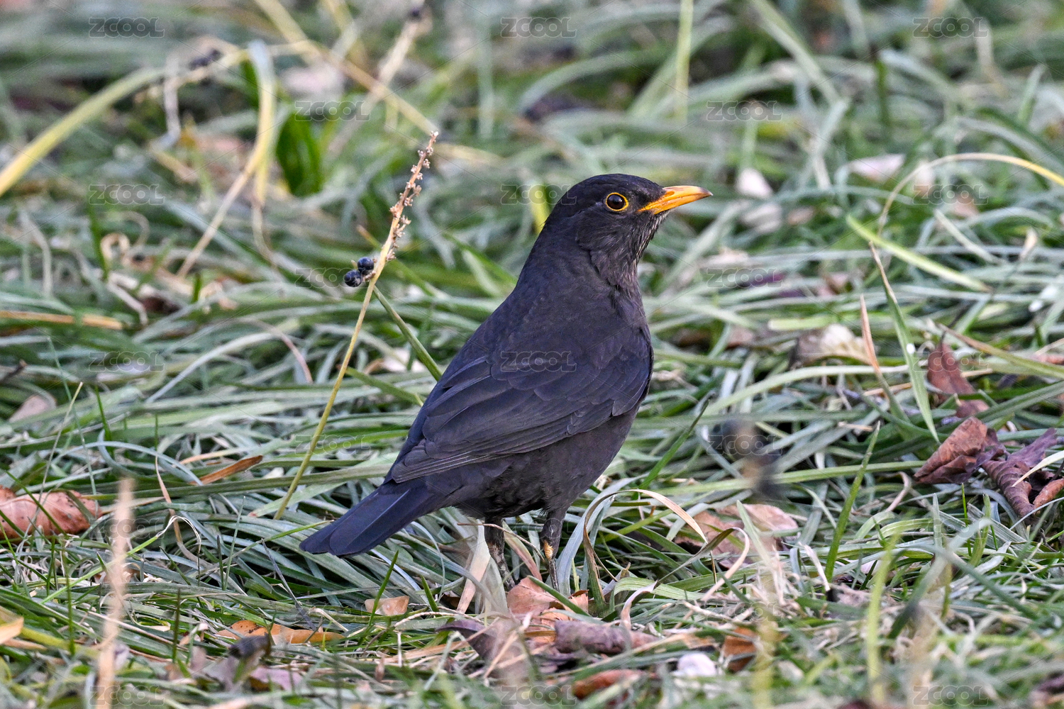 活动于灌丛边缘,在地面上觅食昆虫的乌灰鸫