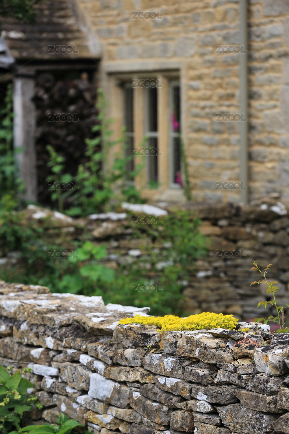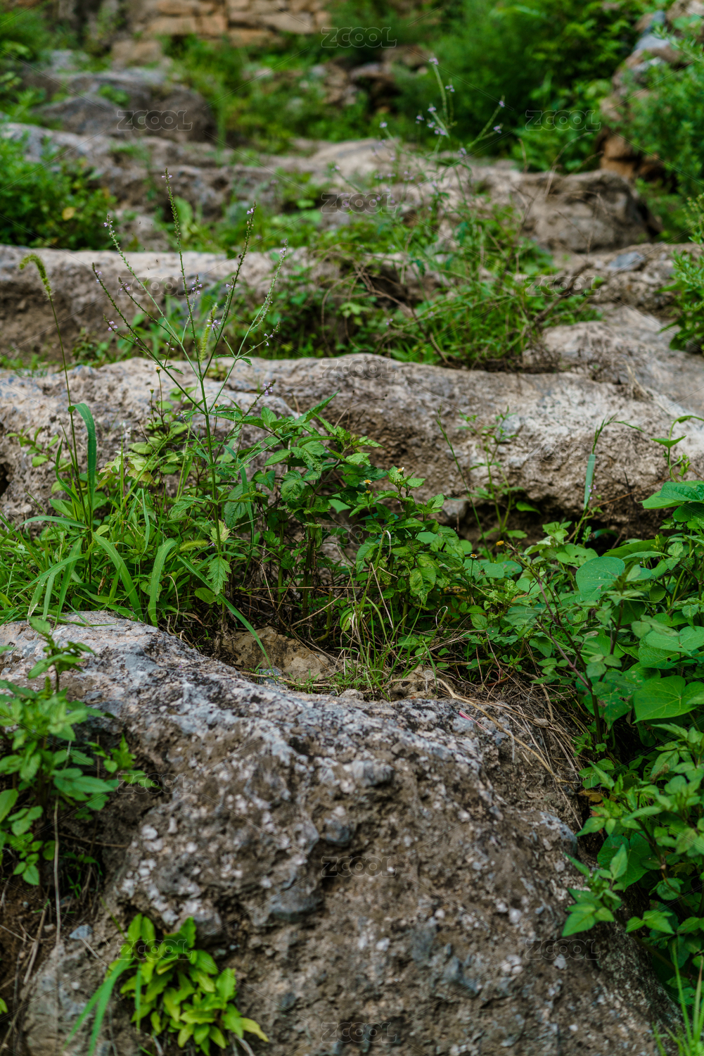 在石头围墙缝隙中生长的植物