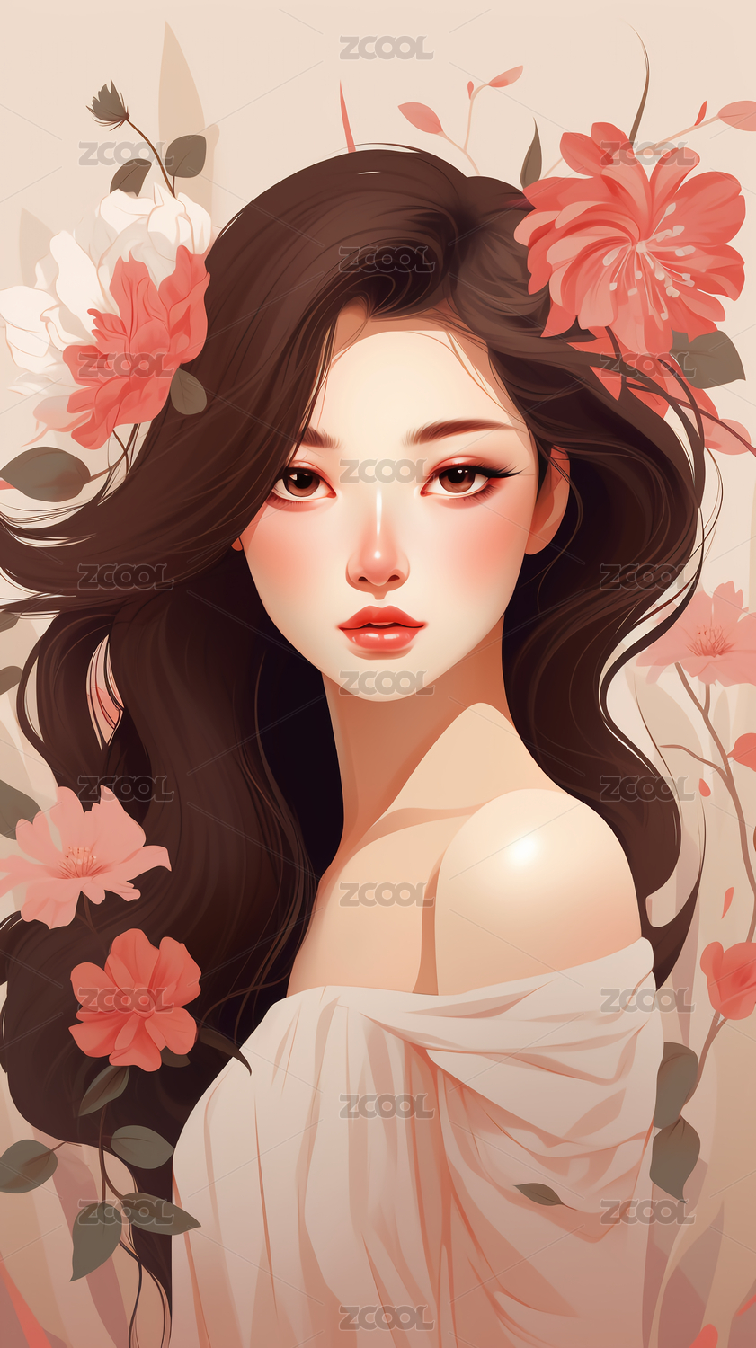 美女,少女,女生,女孩,美人,对视,竖构图,厚涂,插画,长发