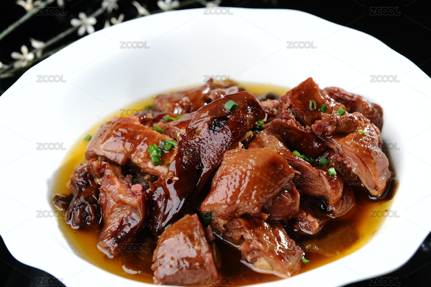 花瓷碗装的红烧柴鸡块