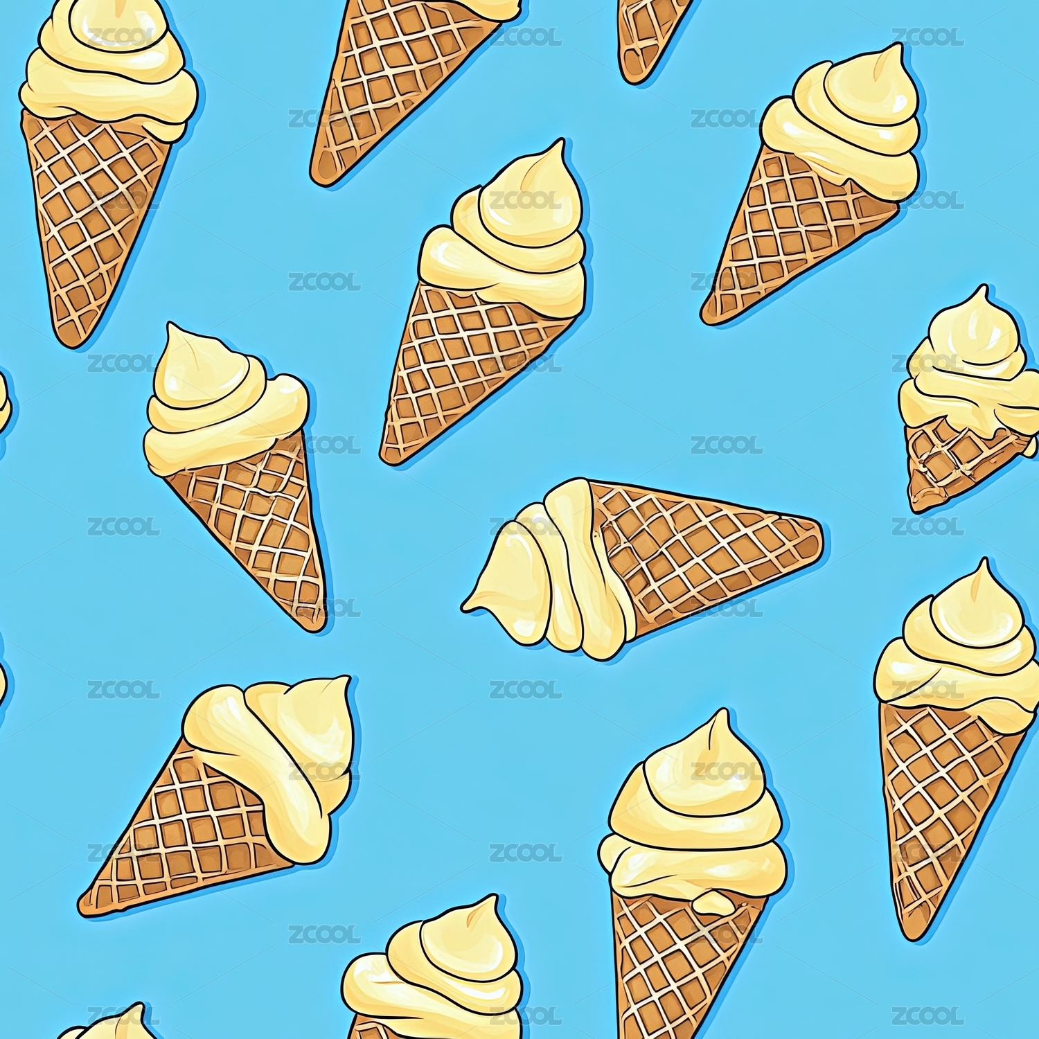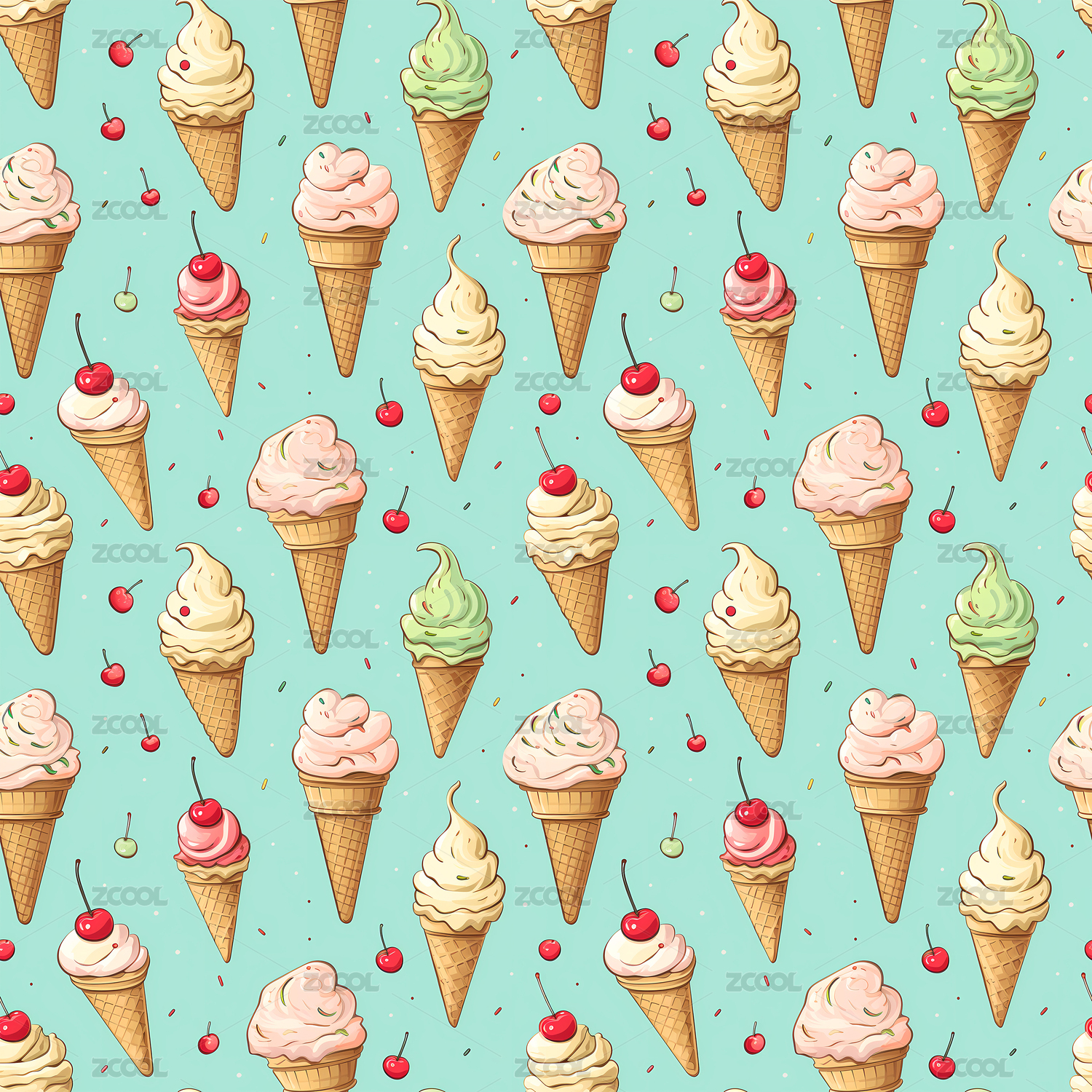 冰淇淋无缝平铺四方连续纹样图案背景