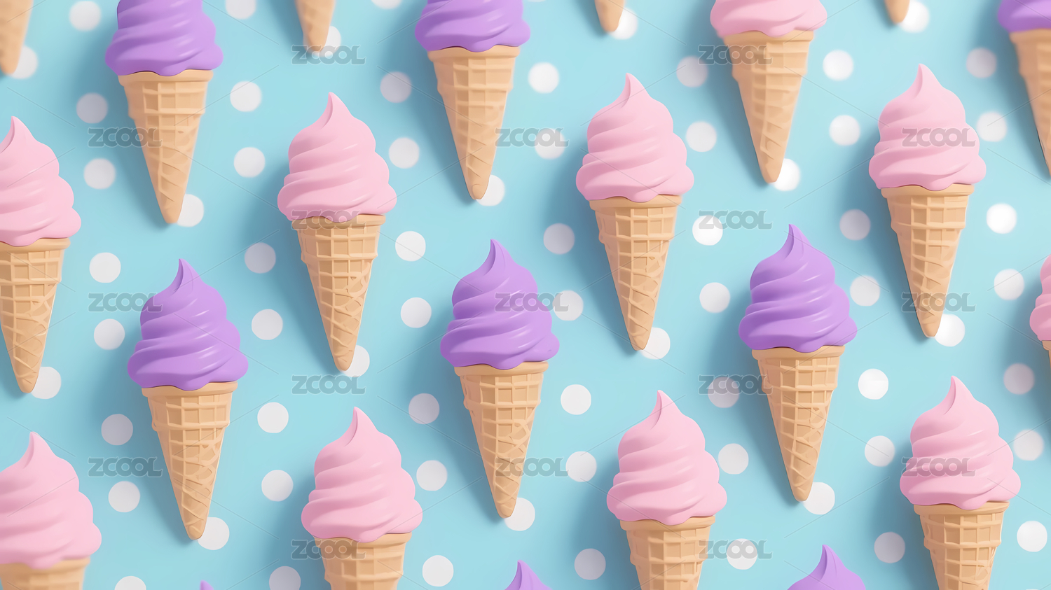 浅蓝波点粉紫冰淇淋