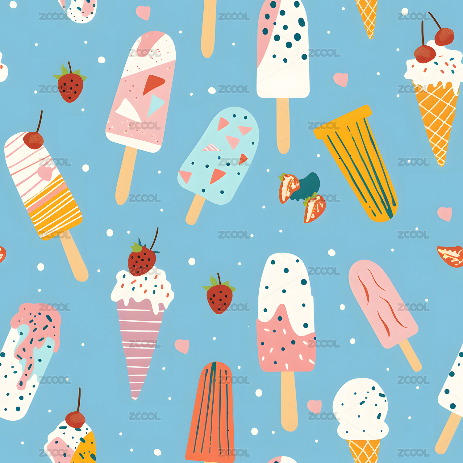草莓冰淇淋无缝平铺