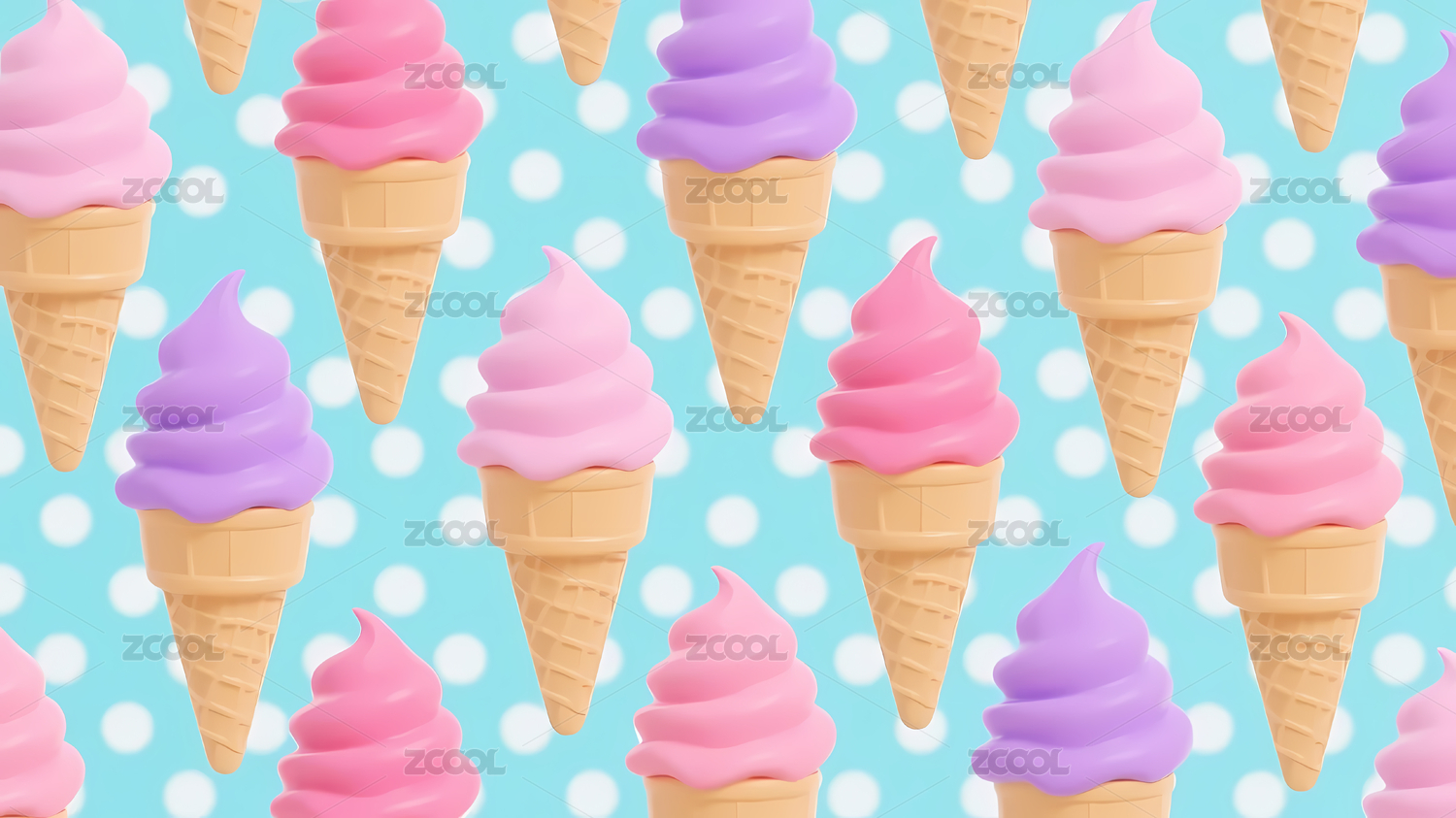 粉紫冰淇淋甜筒排列