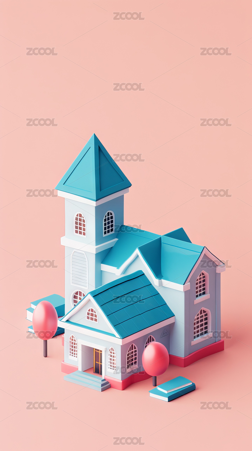 小镇,城市,集市,无人,可爱,卡通,蓝色,背景,童话,发展