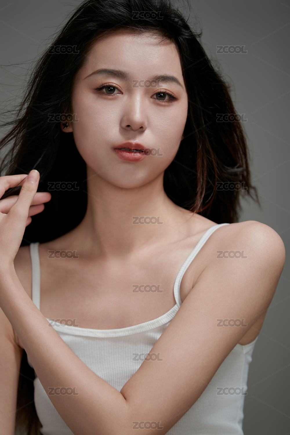 纯色背景,大学生,东方人,肤质,黑头发,护肤,灰色背景,活力,可爱,裸妆