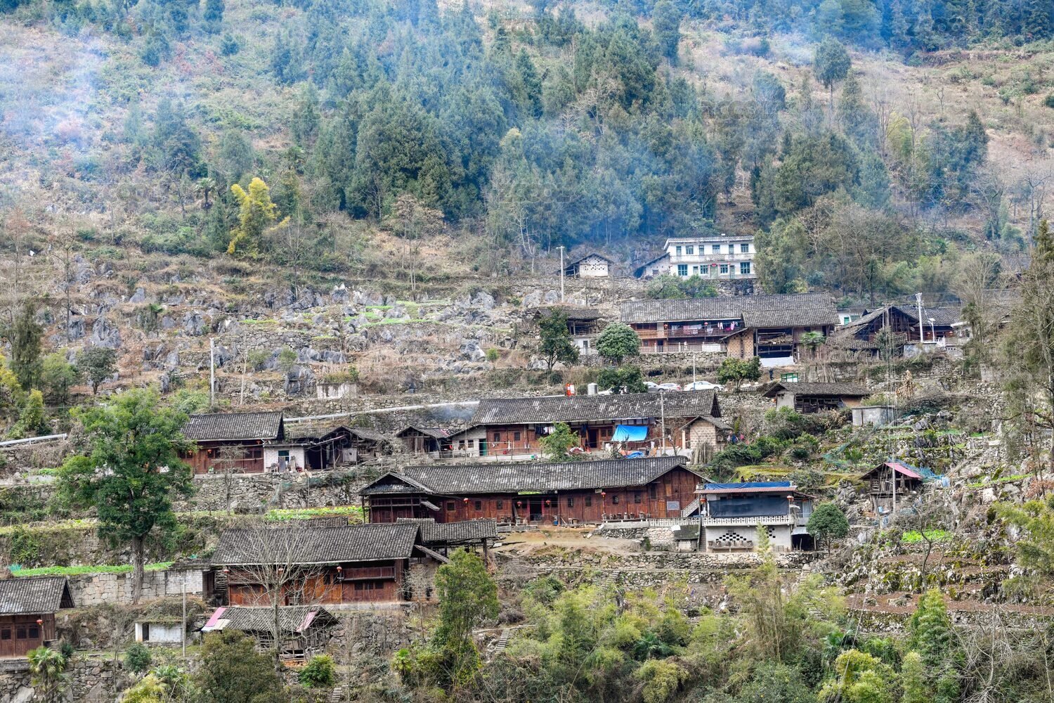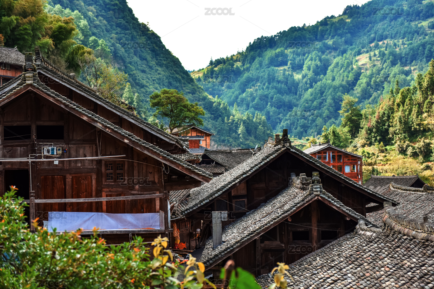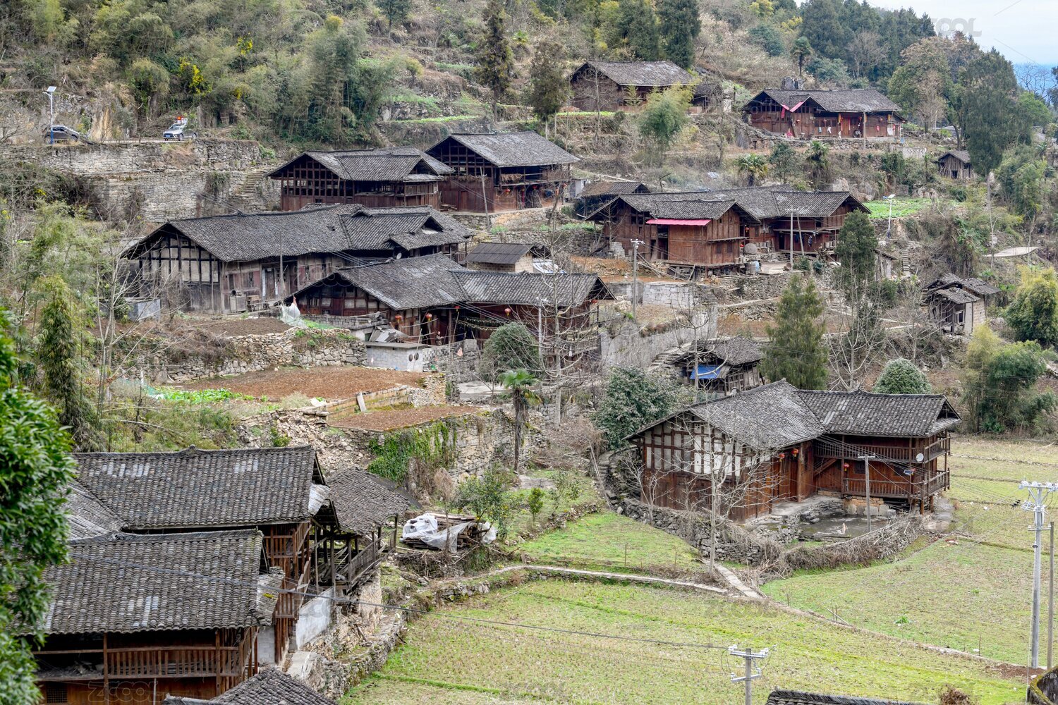 亚洲,中国,重庆,酉阳,天空,山坡,村落,古寨,房屋,木屋
