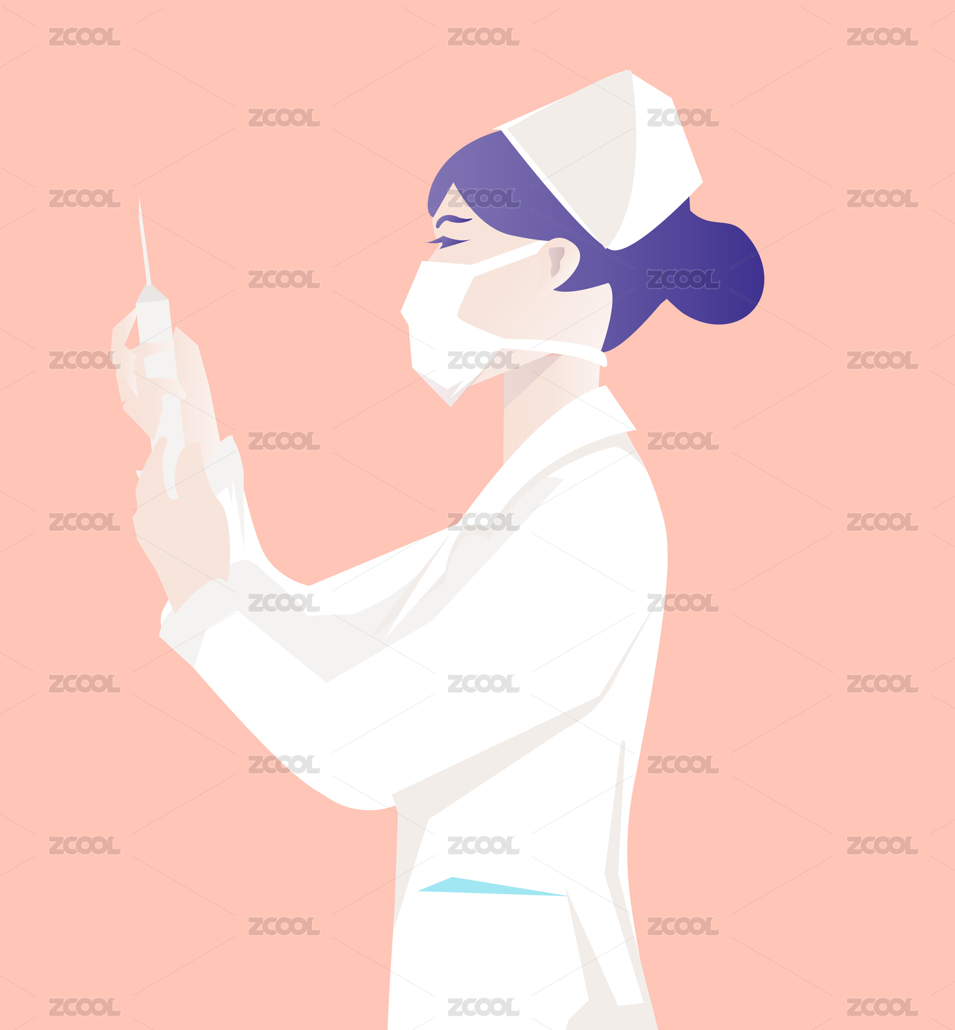 插画,护士,职业,医疗,健康,卫生,口罩,女性,女人,打针