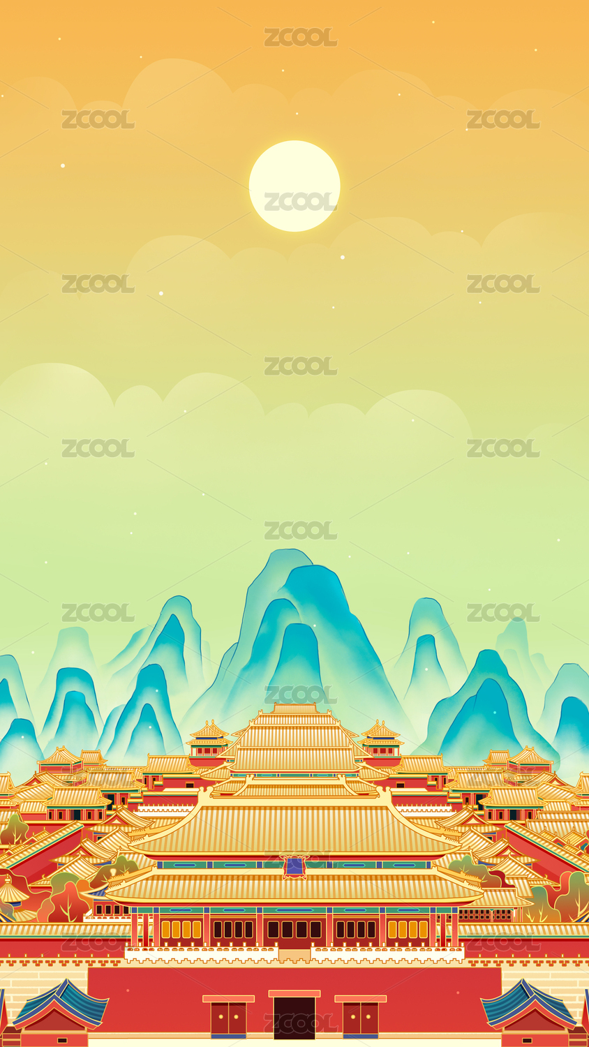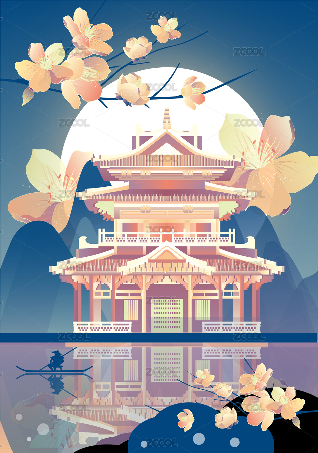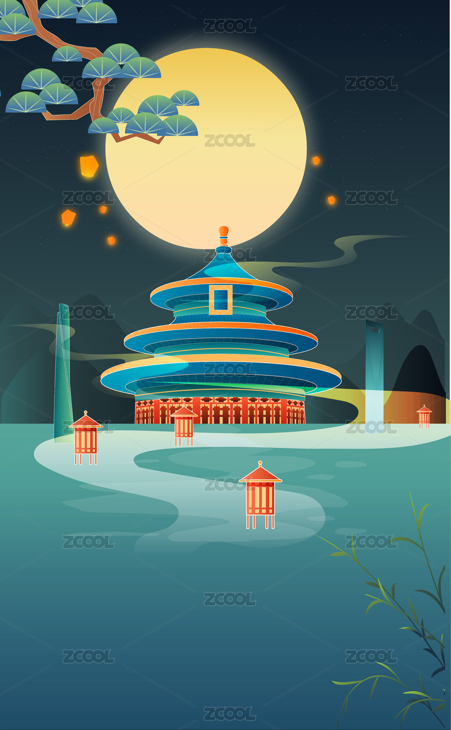 中秋,祥云,国潮,新中式,中国风,卡通,插画,矢量,可爱,天宫