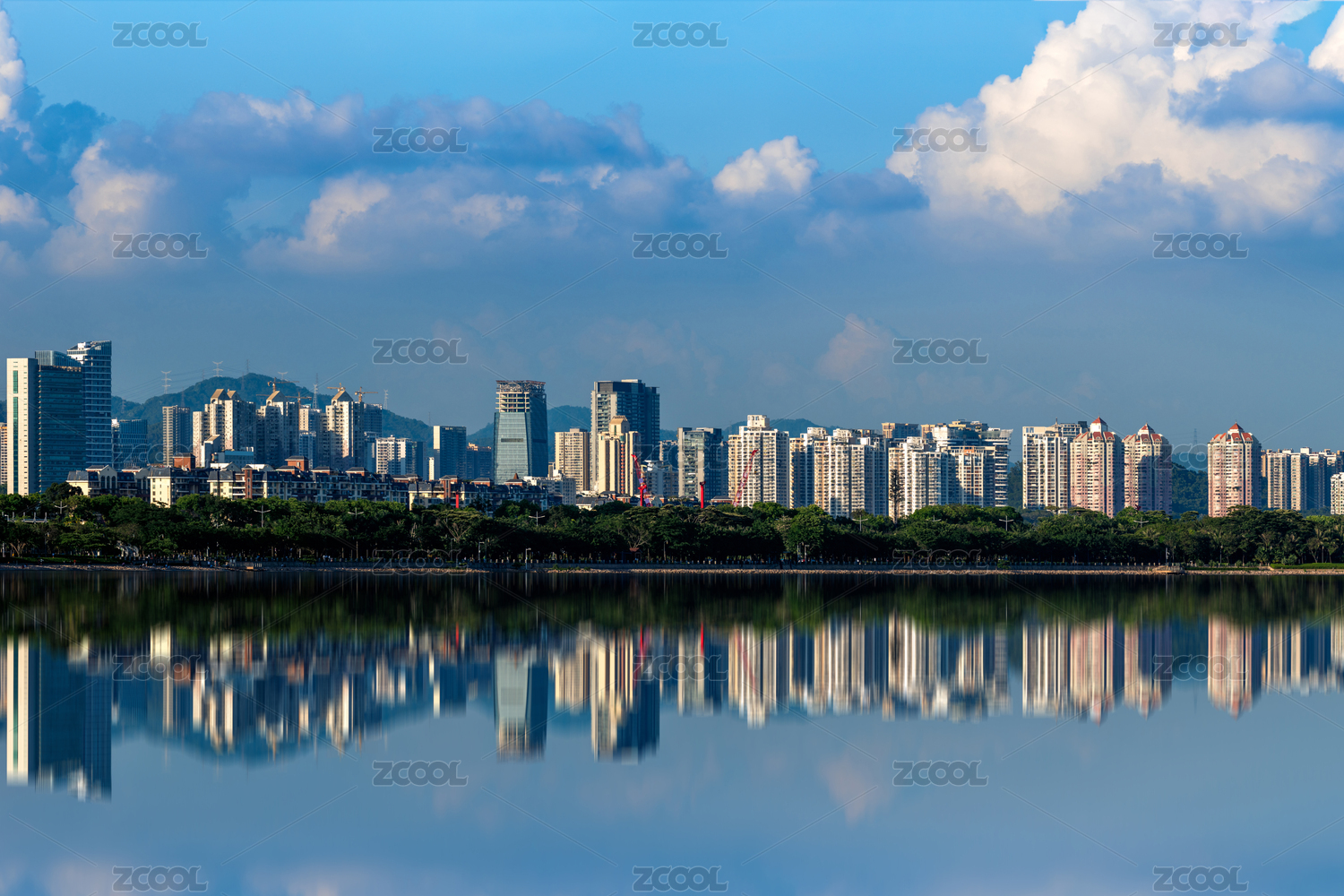建筑物,天际线,倒影,河流,湖南,长沙,梅溪湖,湖水,湖泊,湖