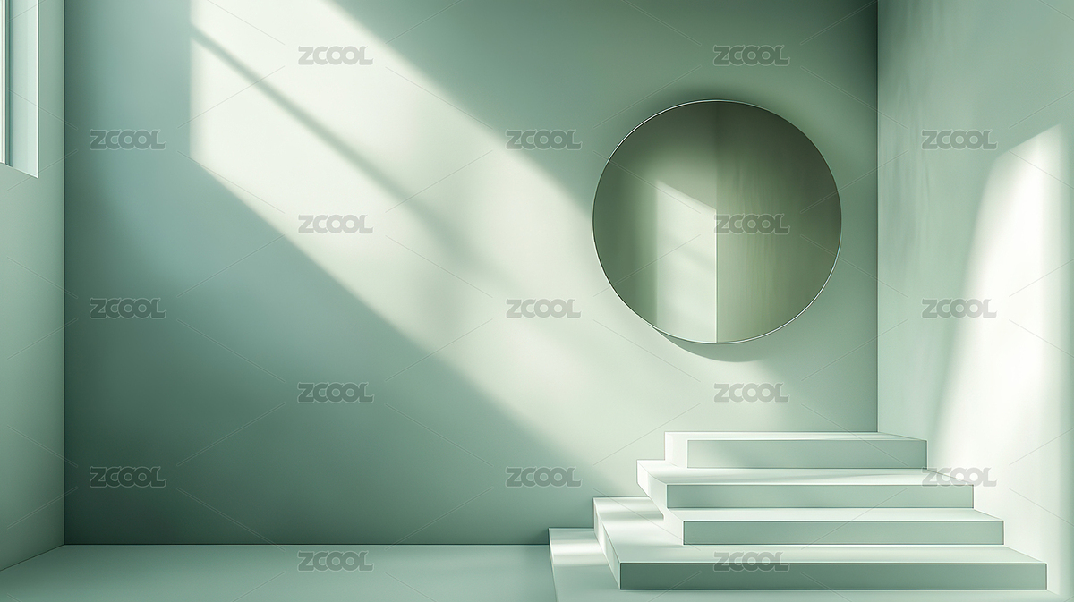 绿色的空展台,极简光影拍摄展示基座