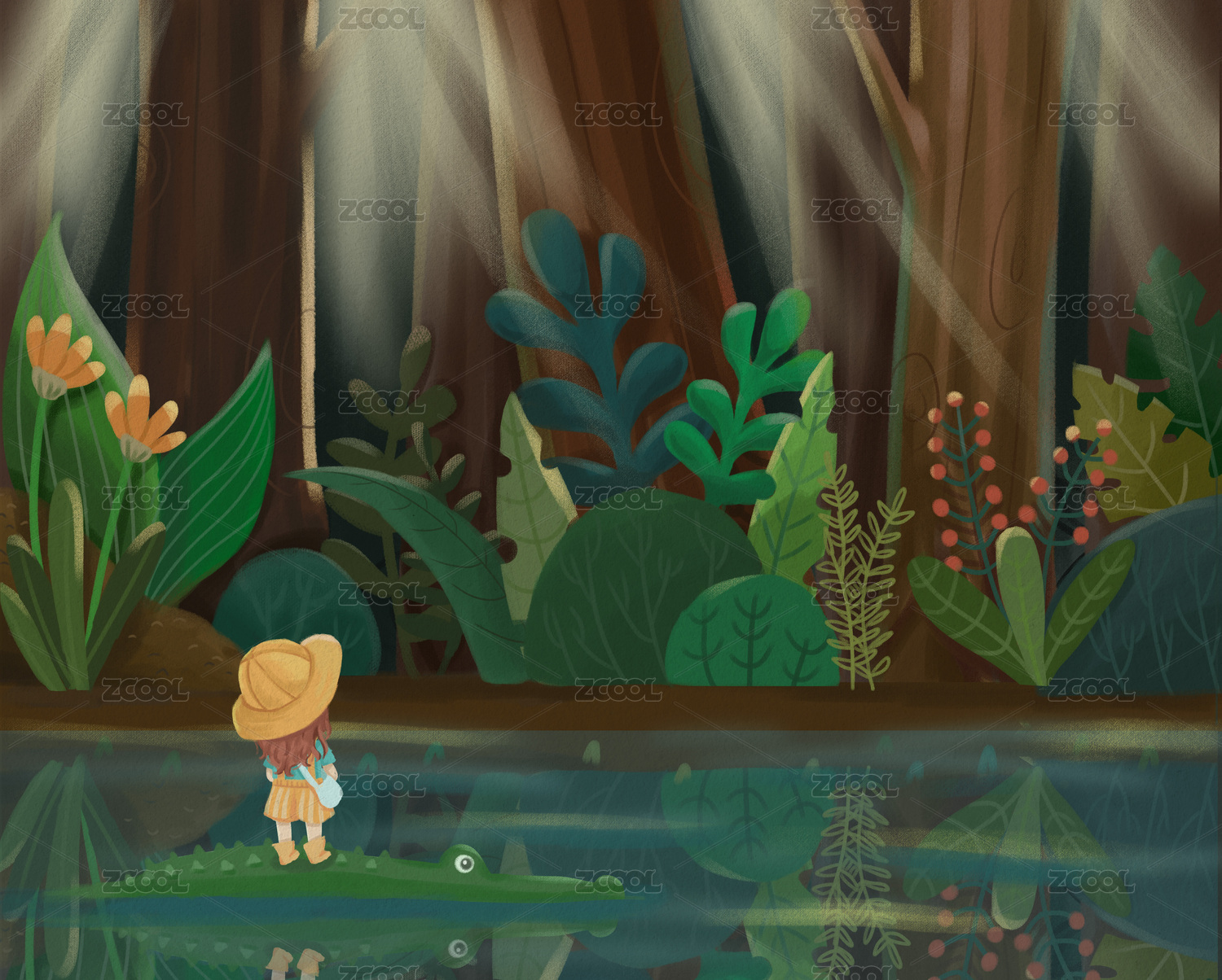 甘蔗树林里女孩穿着冲锋衣徒步探险