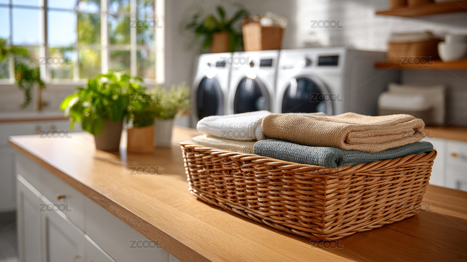 厨房柜台上的折叠毛巾主题