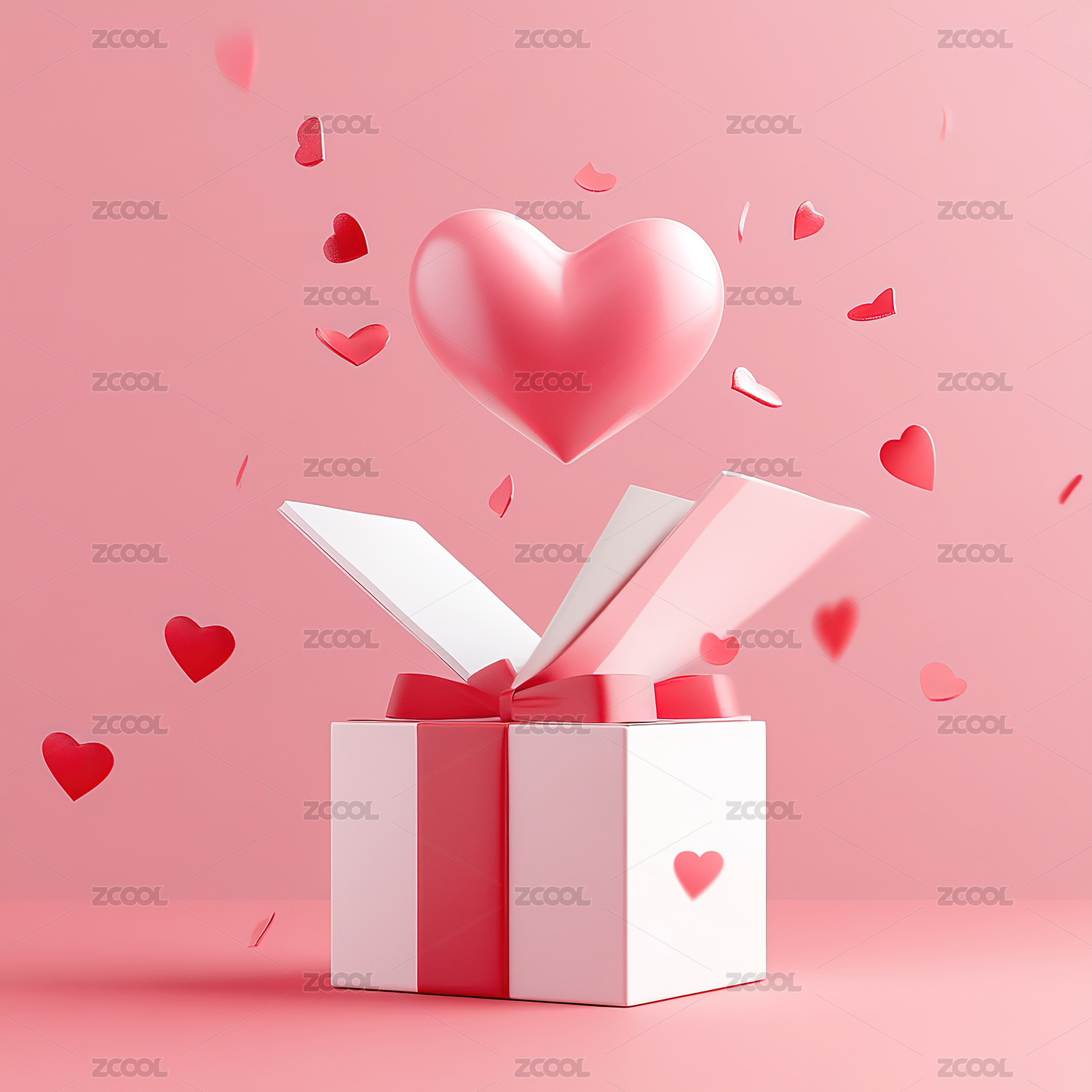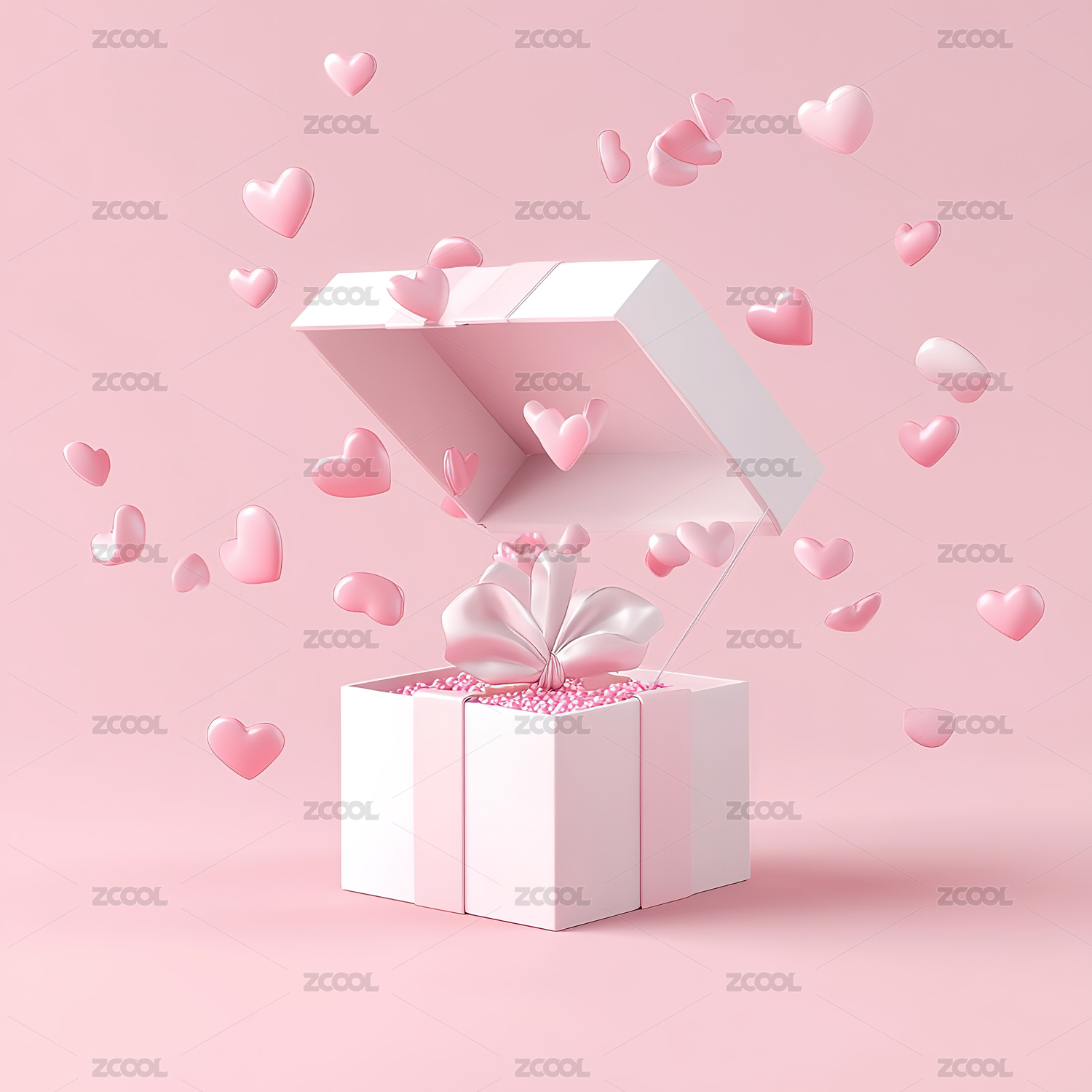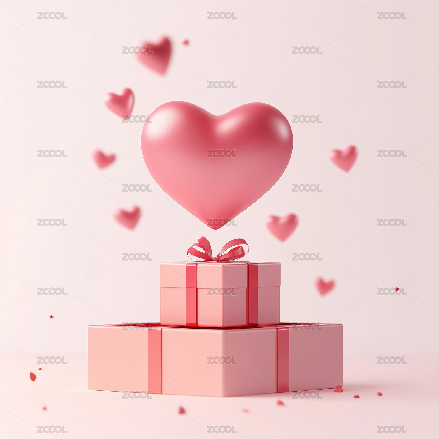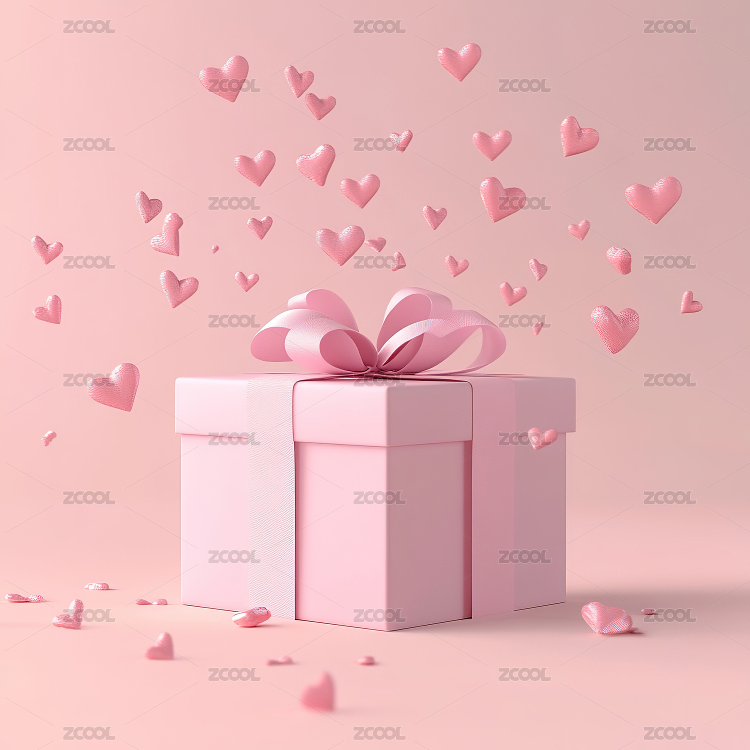 3D情人节粉色卡通礼物盒子和爱心插画元素