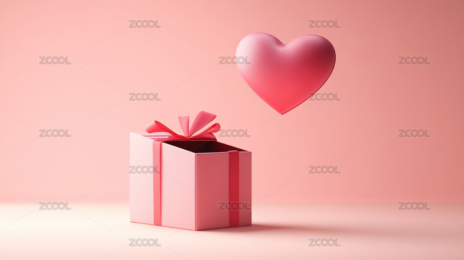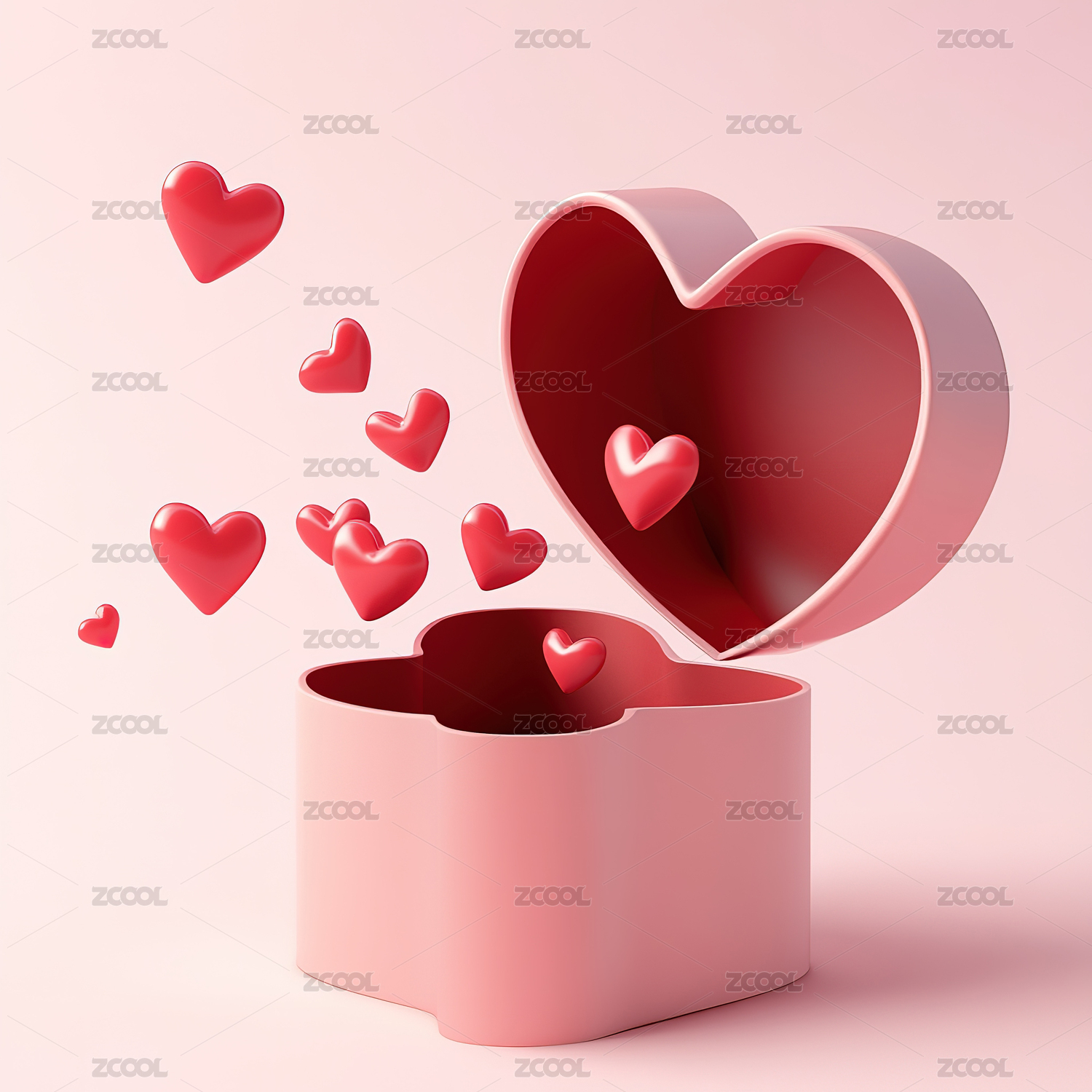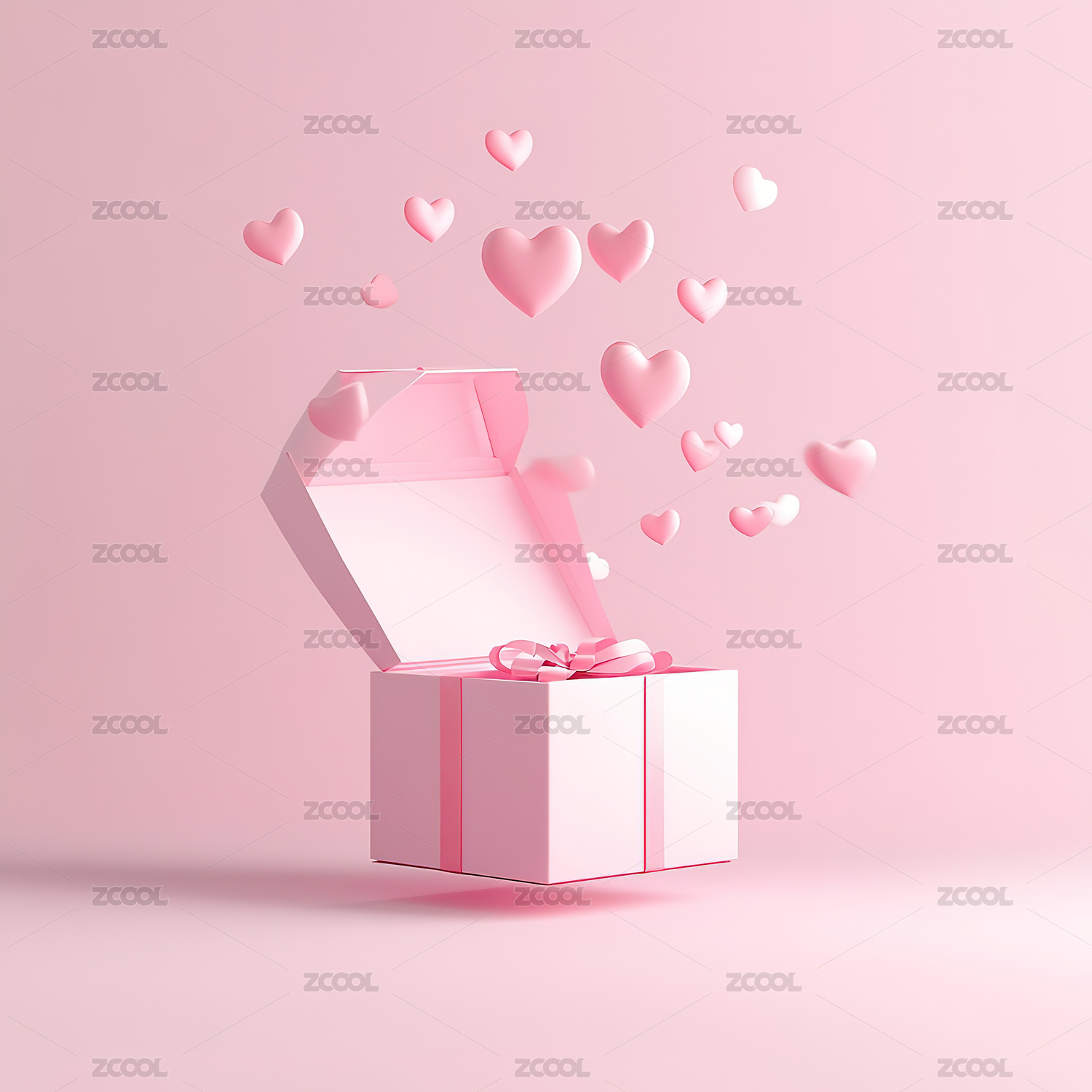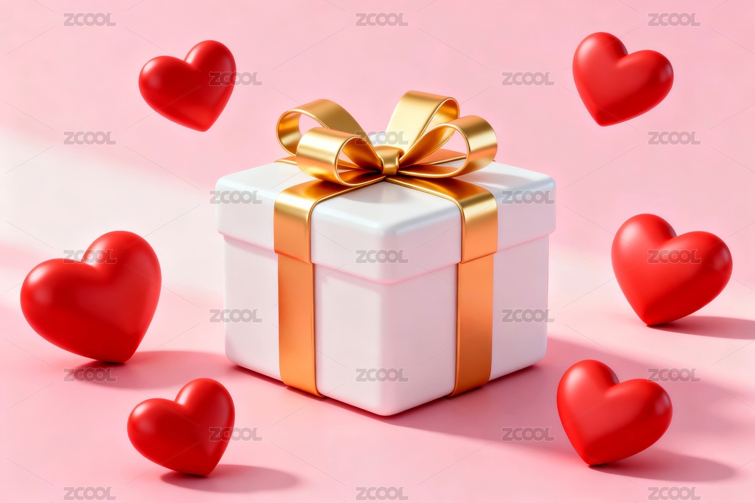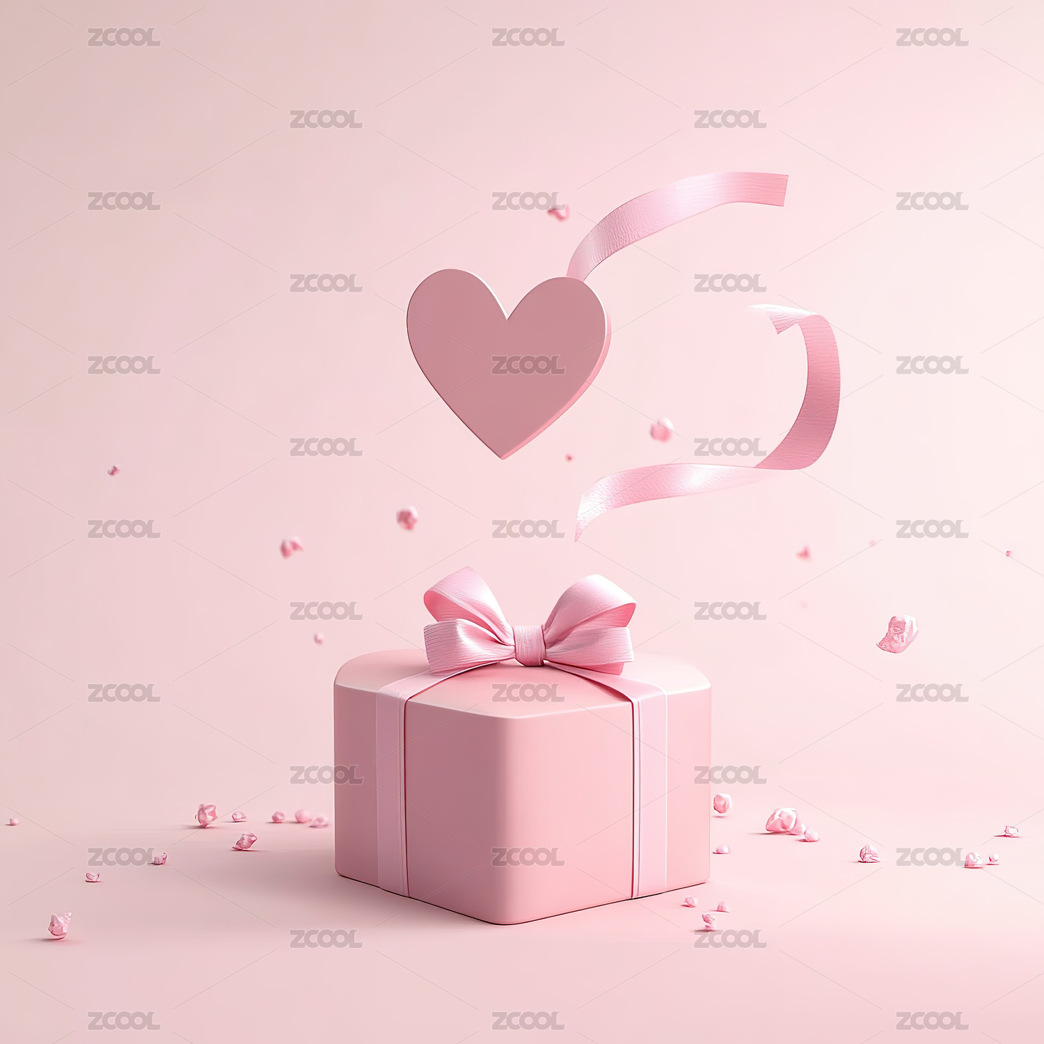 3D情人节粉色卡通礼物盒子和爱心插画元素