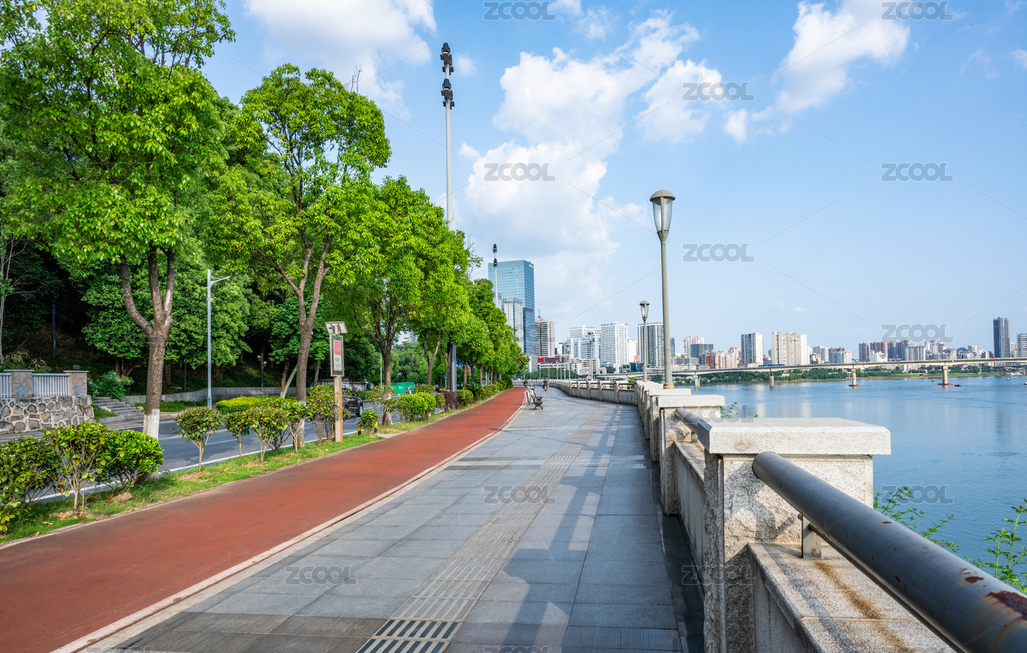 湖南,长沙,橘子洲,都市,蓝天,白云,河流,湘江,滨江,栈道