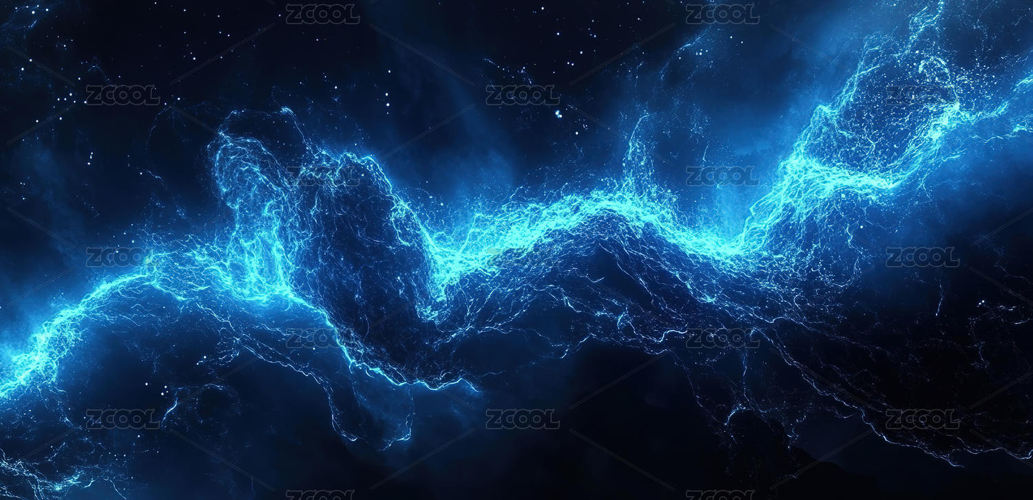 电流线条 蓝色光芒 黑暗背景 能量中心