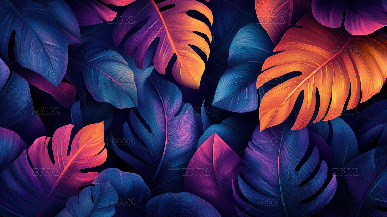 深浅交织的多彩热带植物叶片