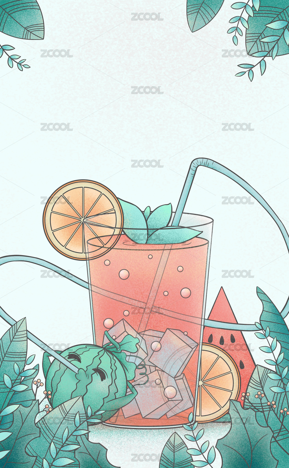 夏天水果茶饮美食插画立夏节气美食解暑海报