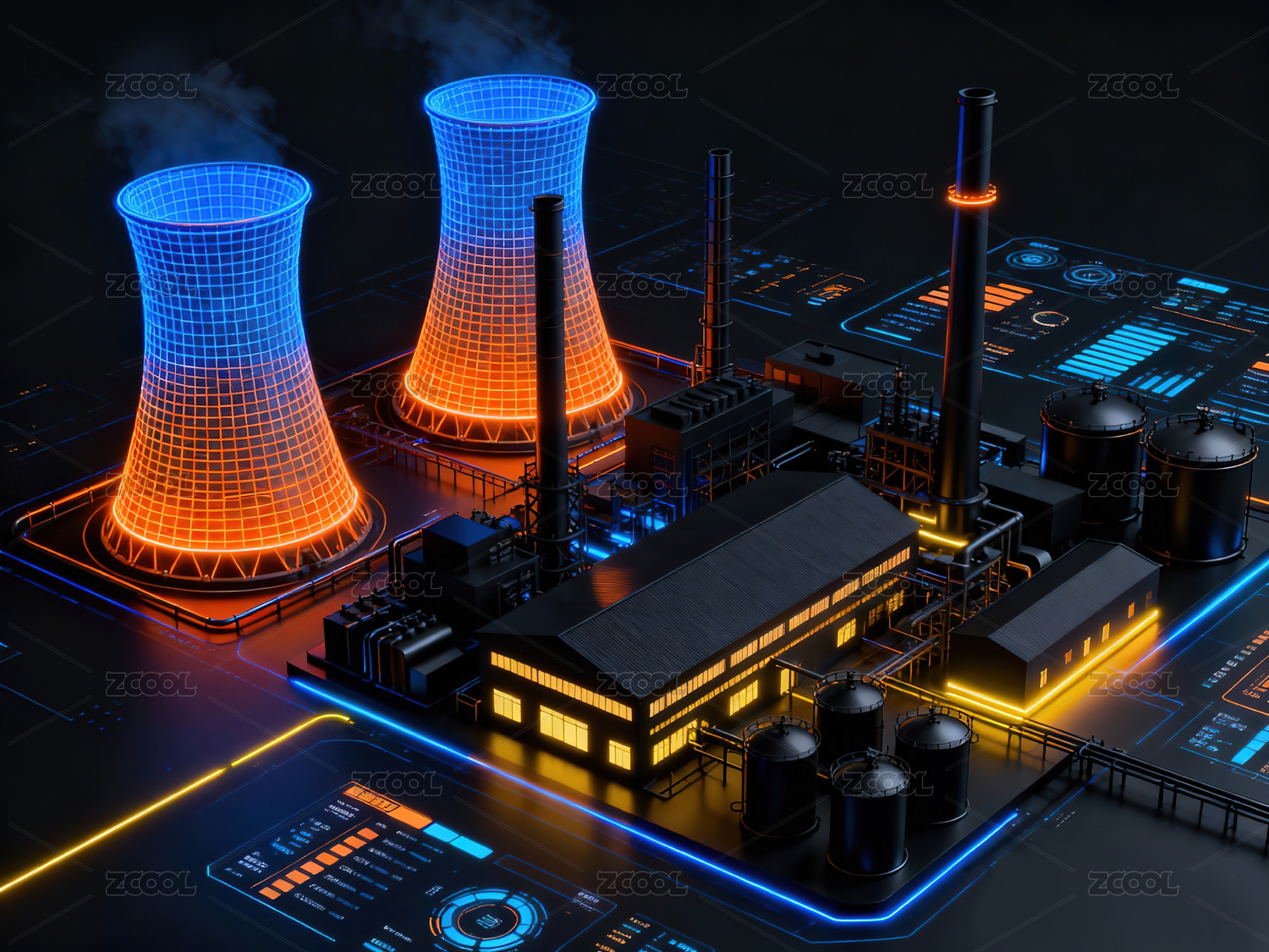 工业,三维图形,建筑,能源,工厂,污染,等角投影,设计,烟囱,石油